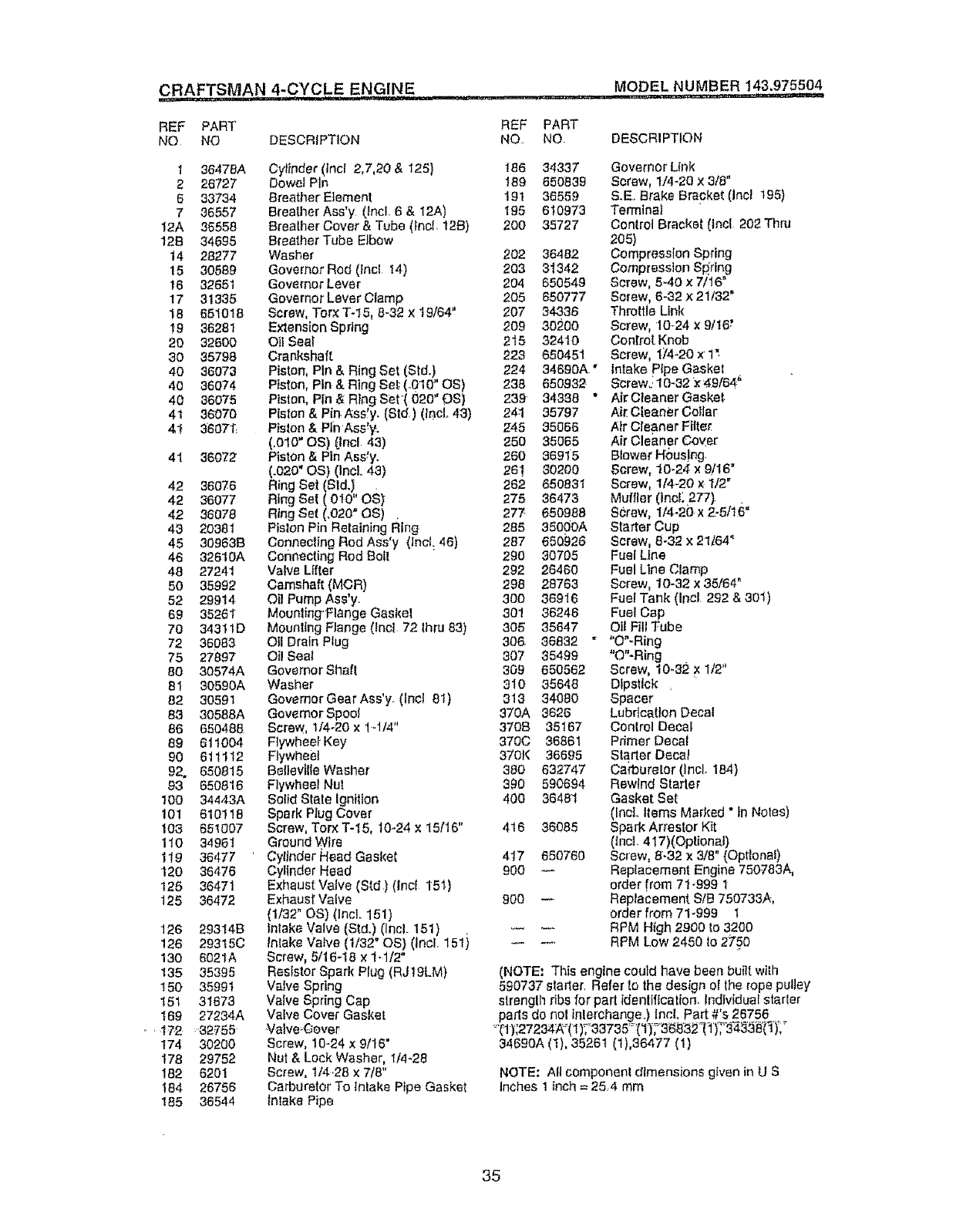 CRAFTSMAN 4-CYCLE ENGINE MODEL NUMBER 143,975504