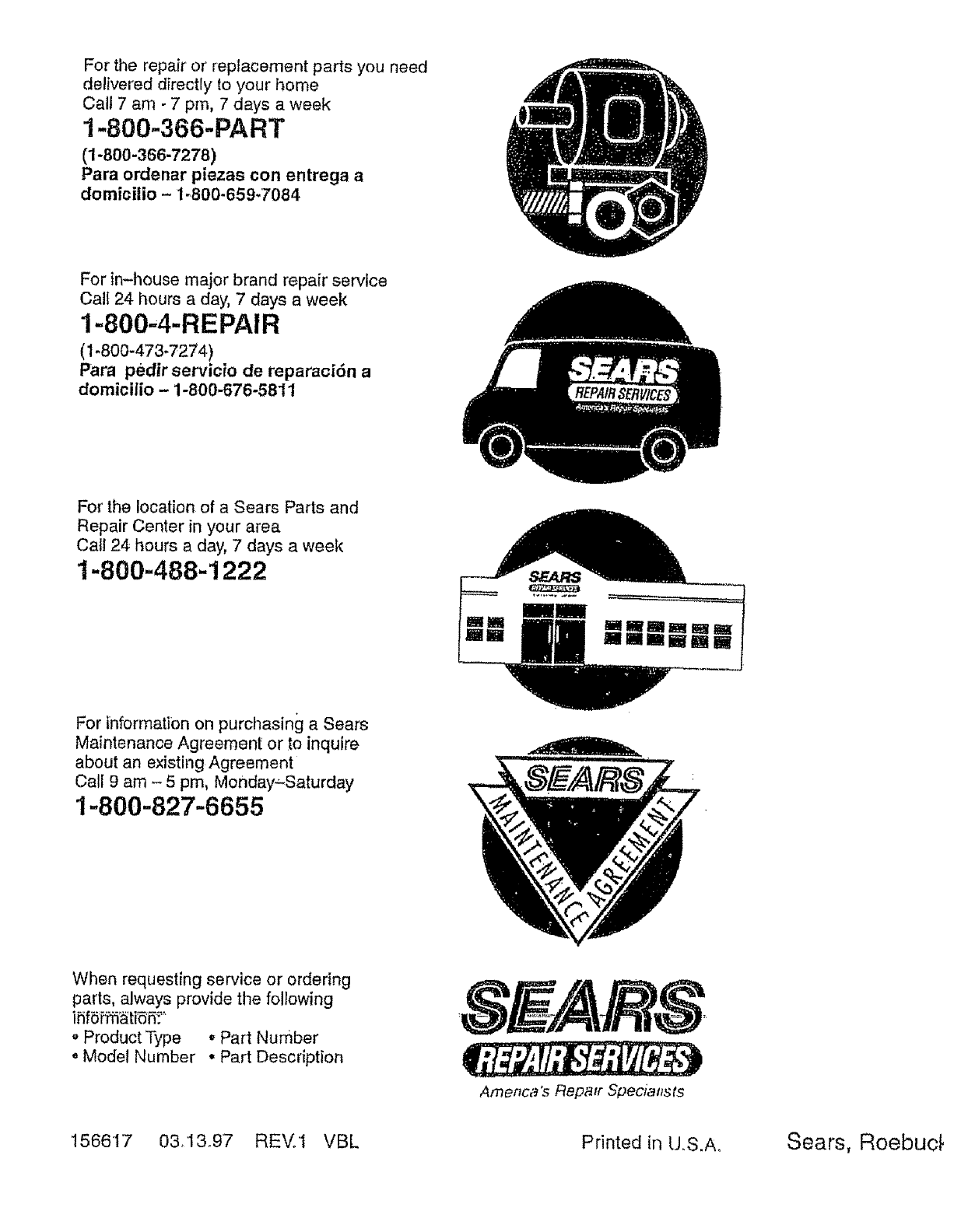 156617 03_13_97 REVol VBL Printed in U.S.A. Sears, Roebuol,