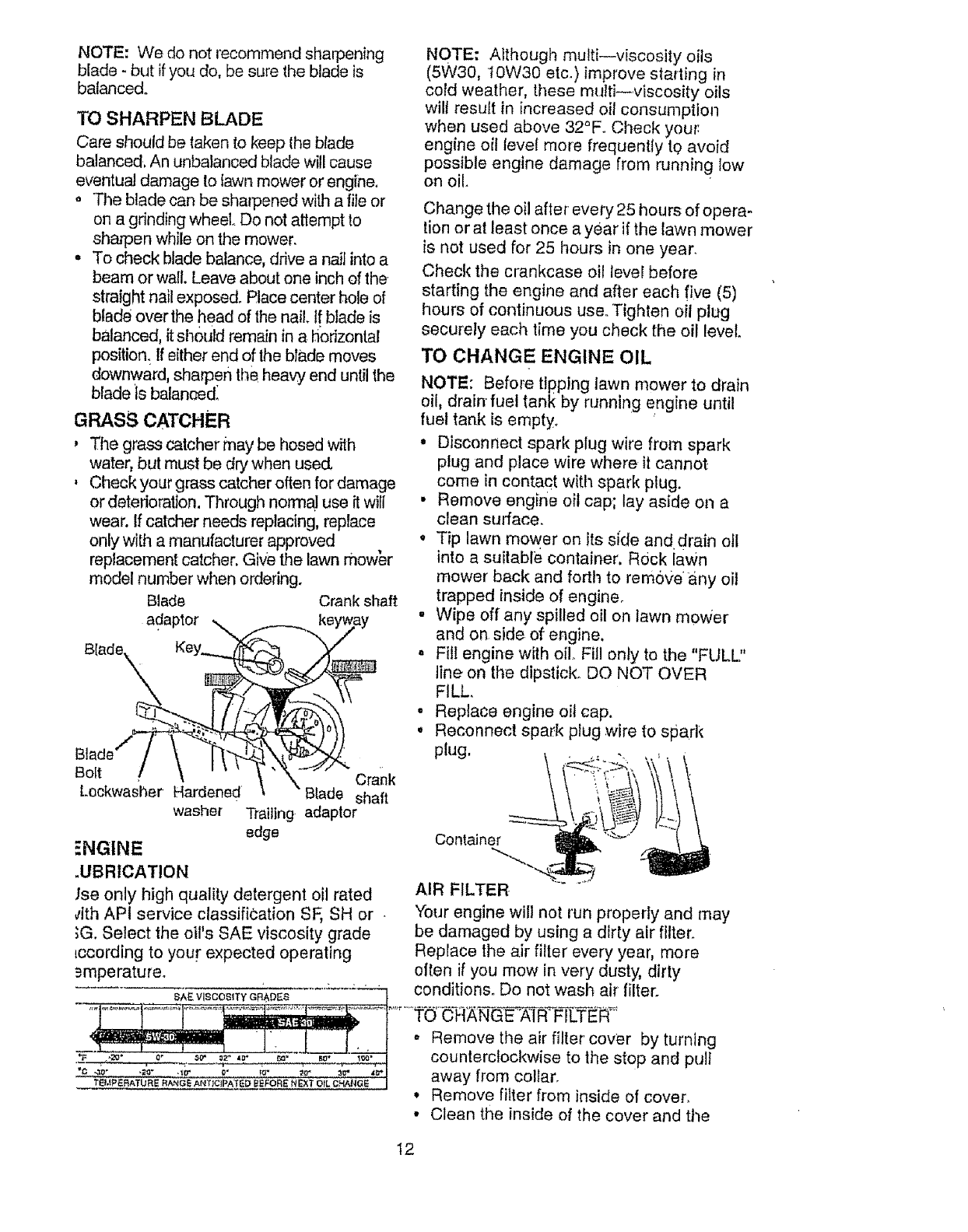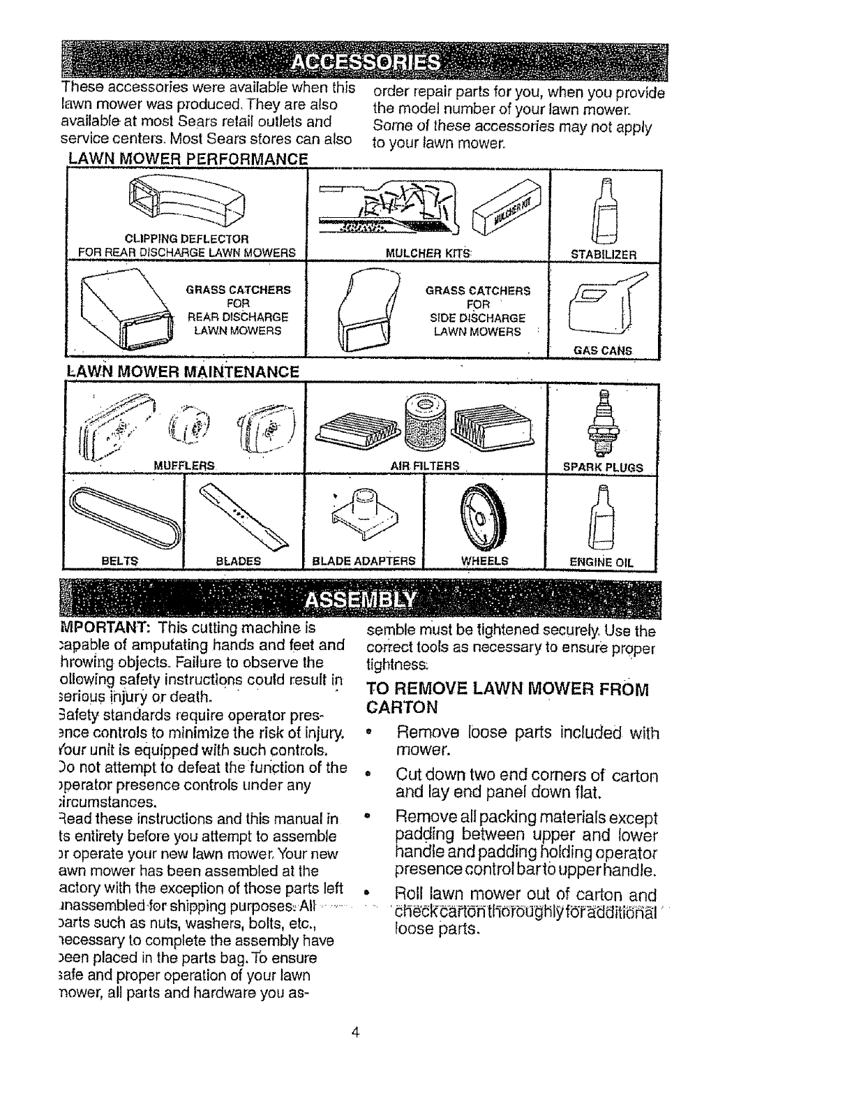 blades, blade adapter€, belts, air cleaners and spark plug.