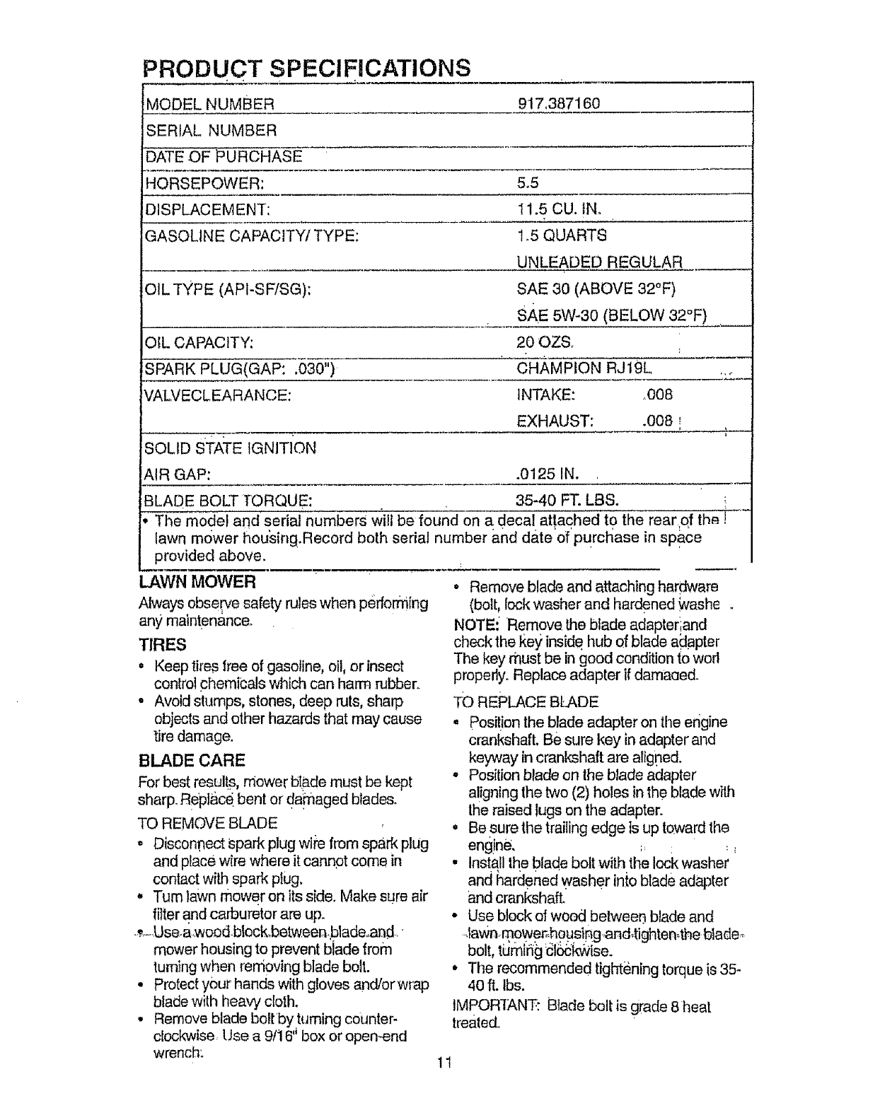 Craftsman 917387160 User Manual ROTARY LAWN MOWER Manuals And Guides L0712537