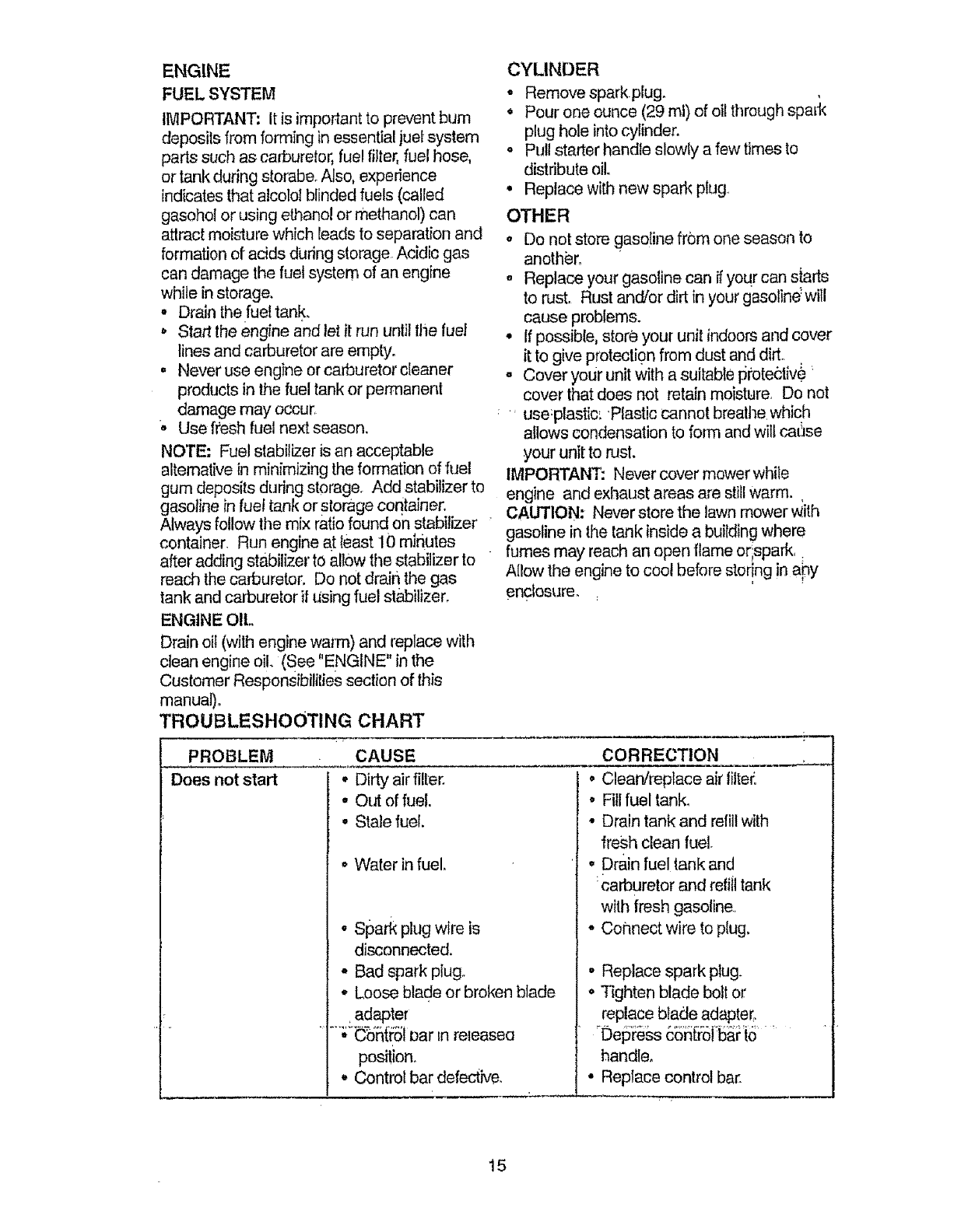lubricated, and tuned up according to the operating and maintenance instructions in the