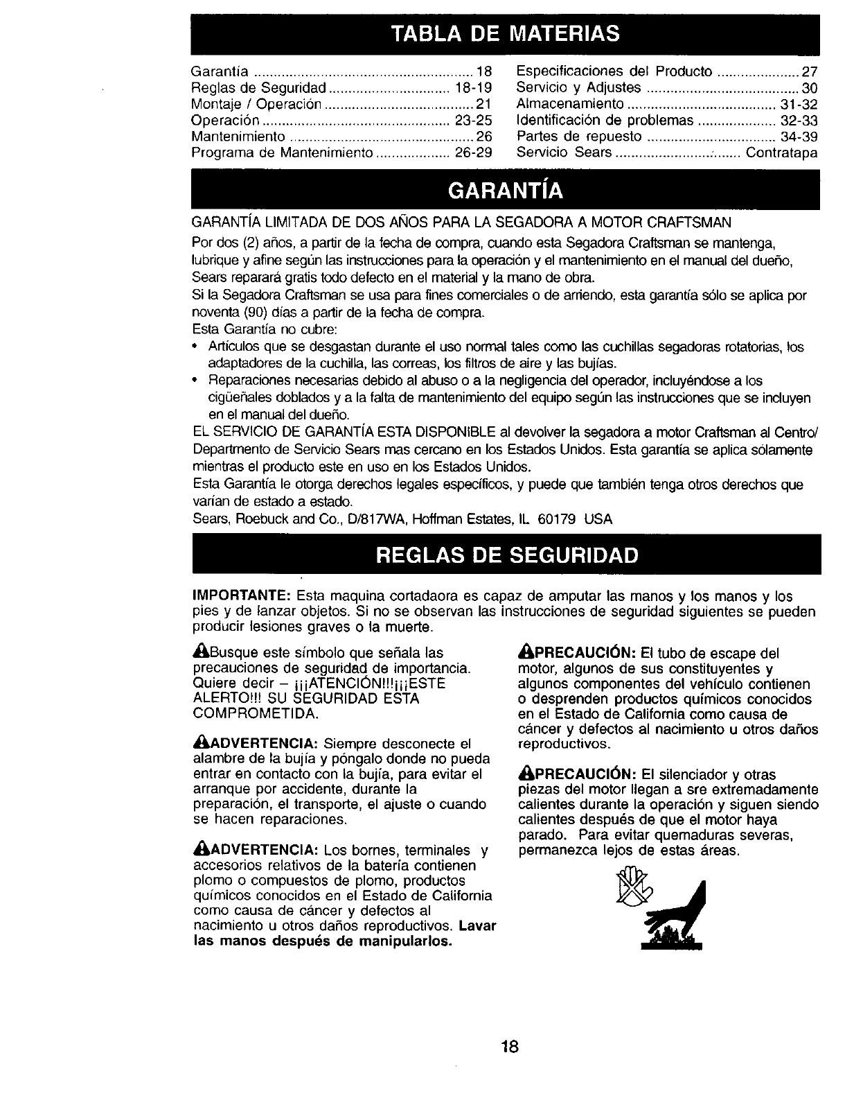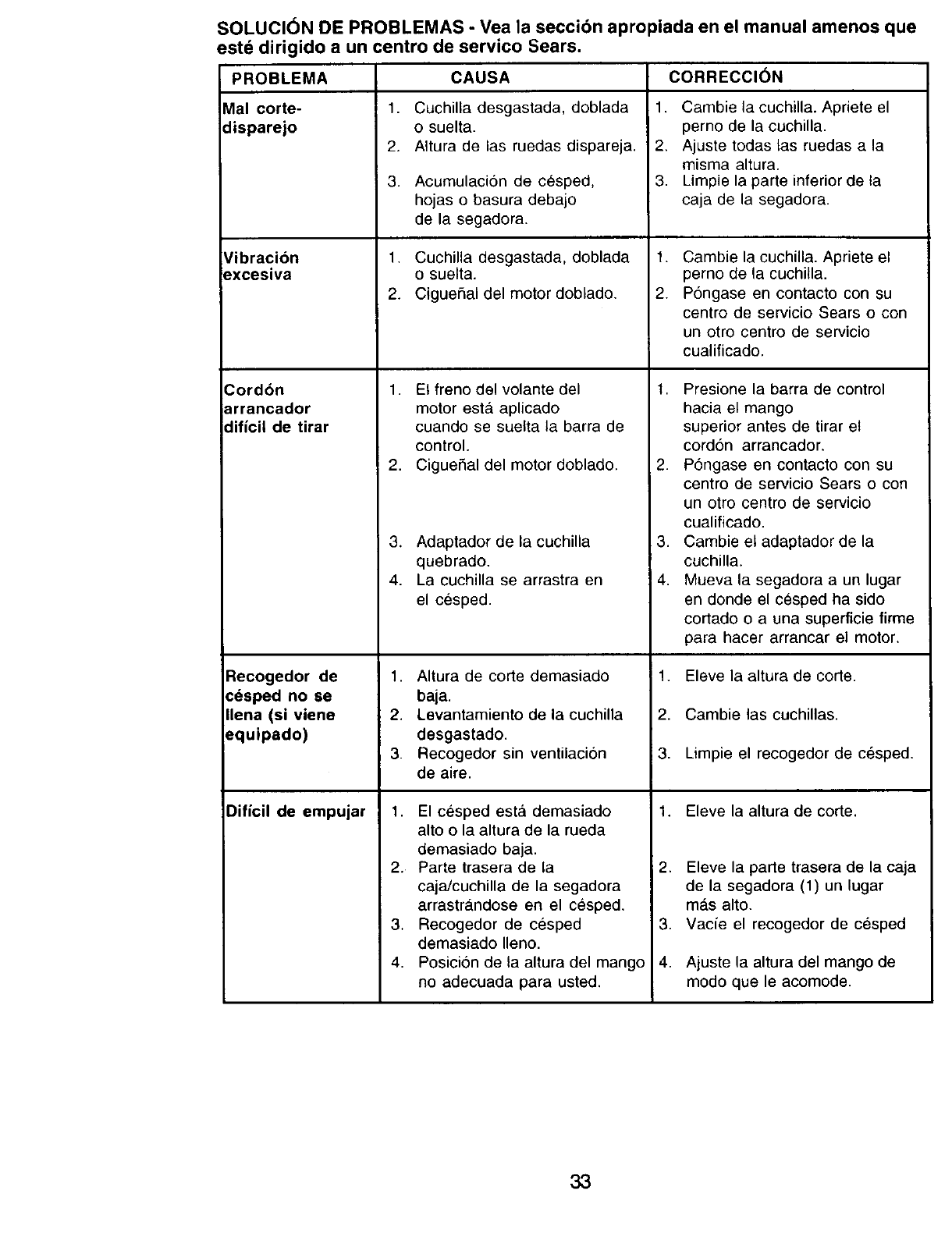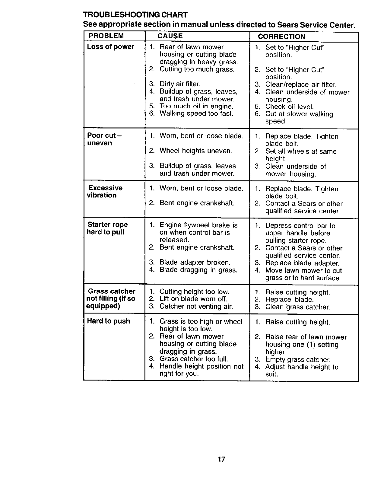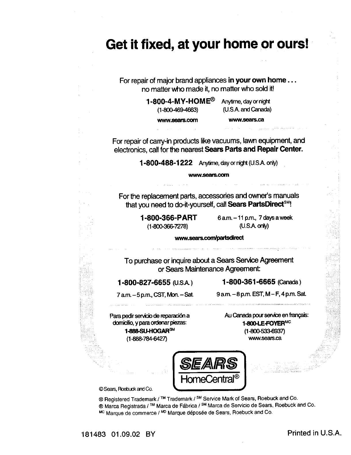 Sears Service ......................... Back Cover