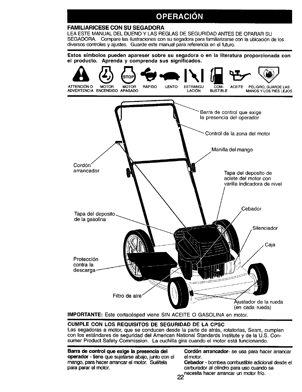 Craftsman 917387620 User Manual Gas, Walk Behind Lawnmower Manuals And Guides L0202089