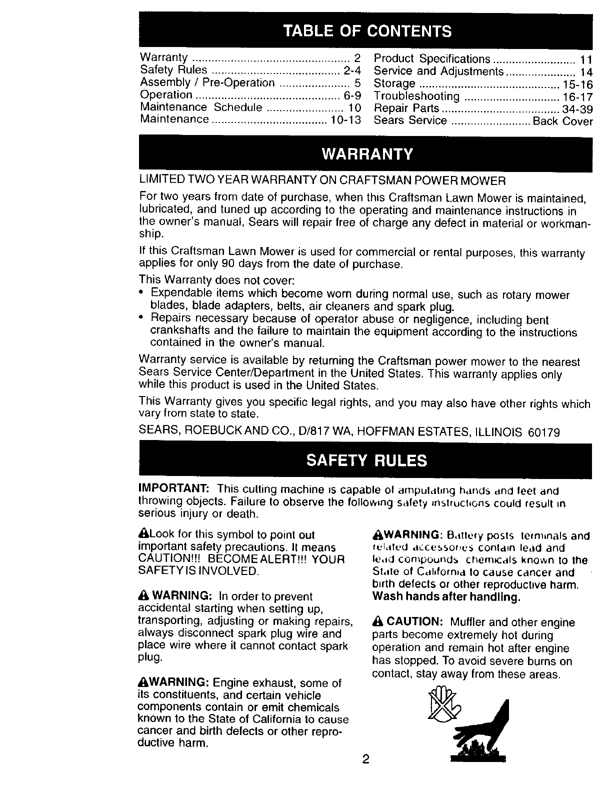 LIMITED TWO YEAR WARRANTY ON CRAFTSMAN POWER MOWER