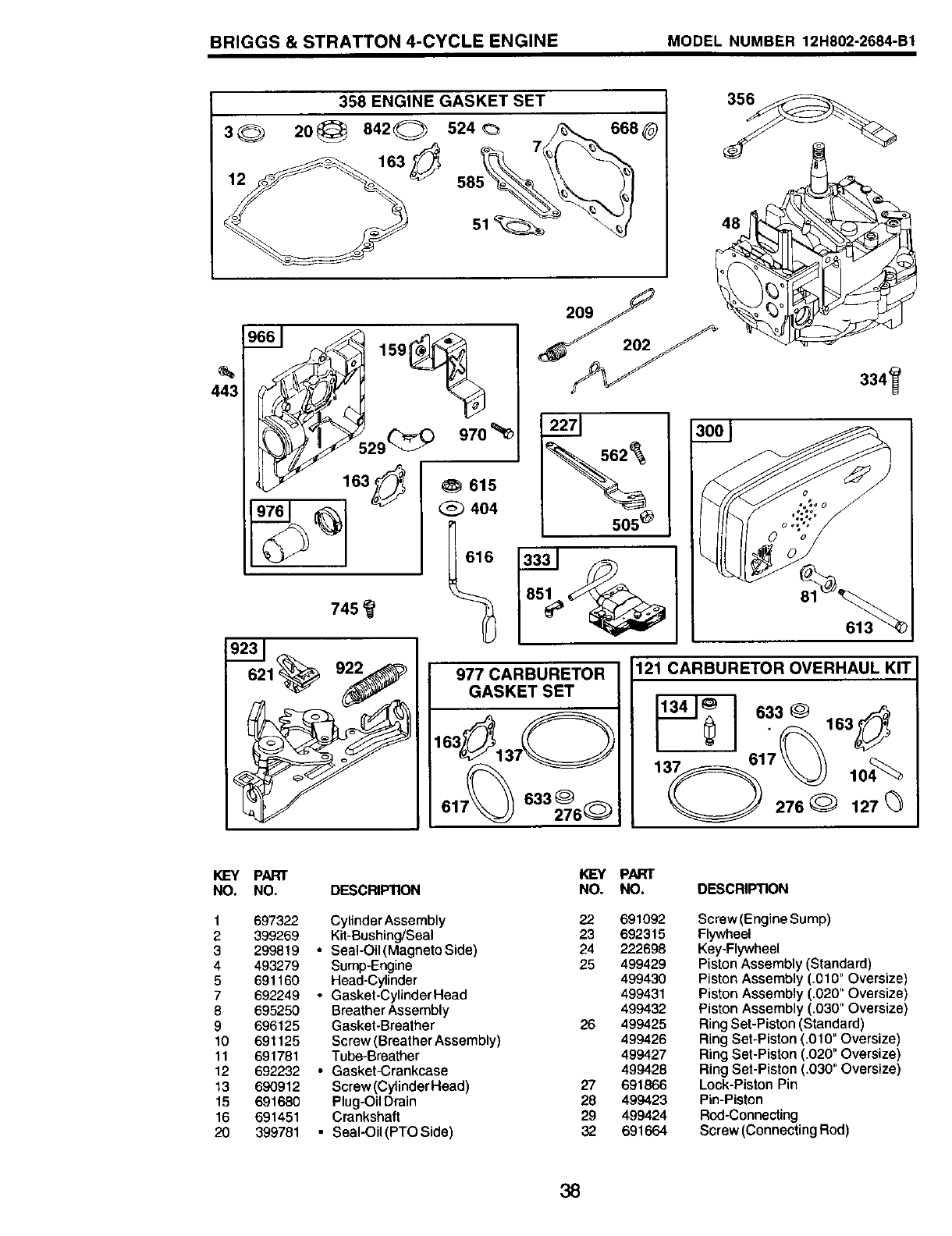 •Included in Engine Gasket Set, Key No. 358