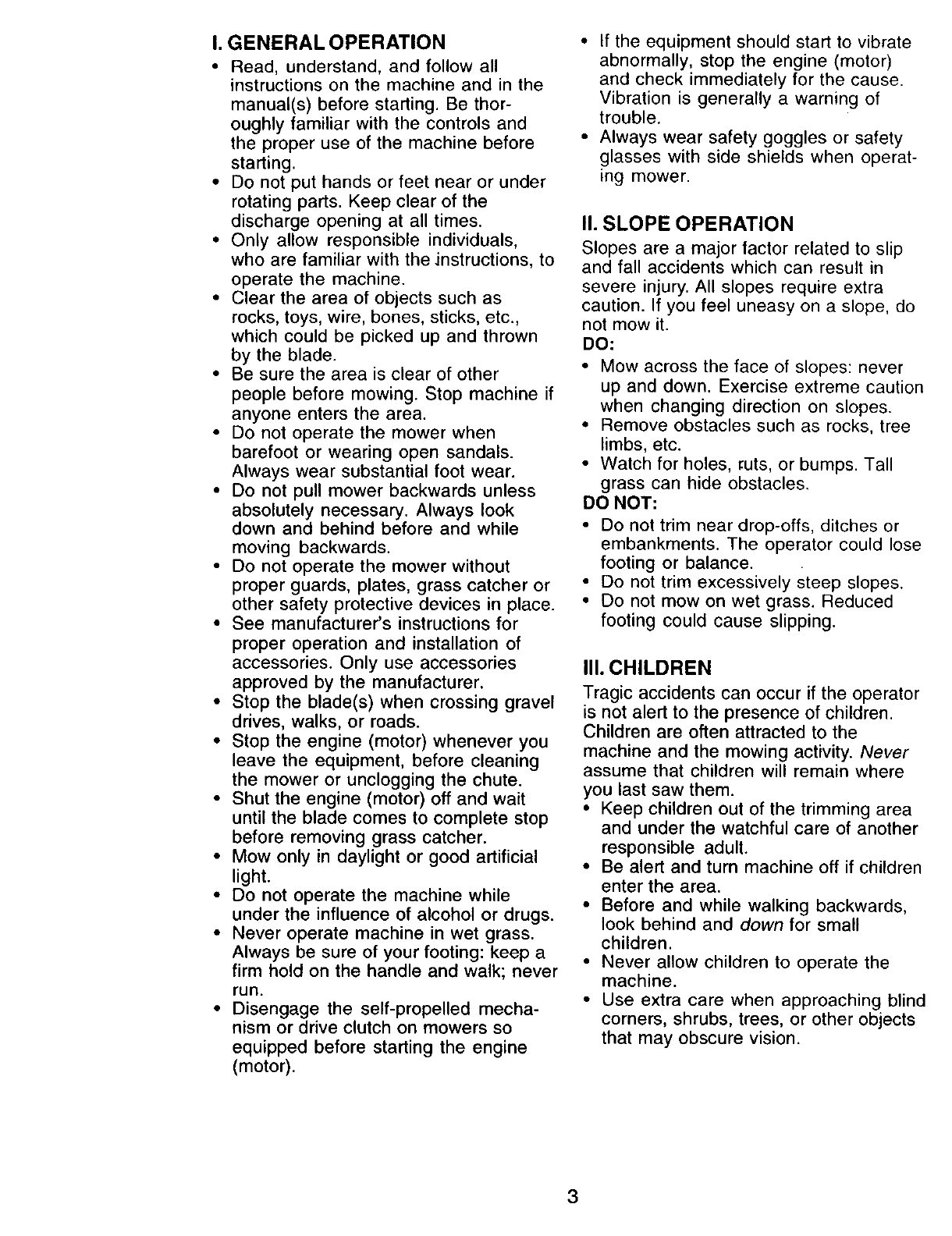 I. GENERAL OPERATION