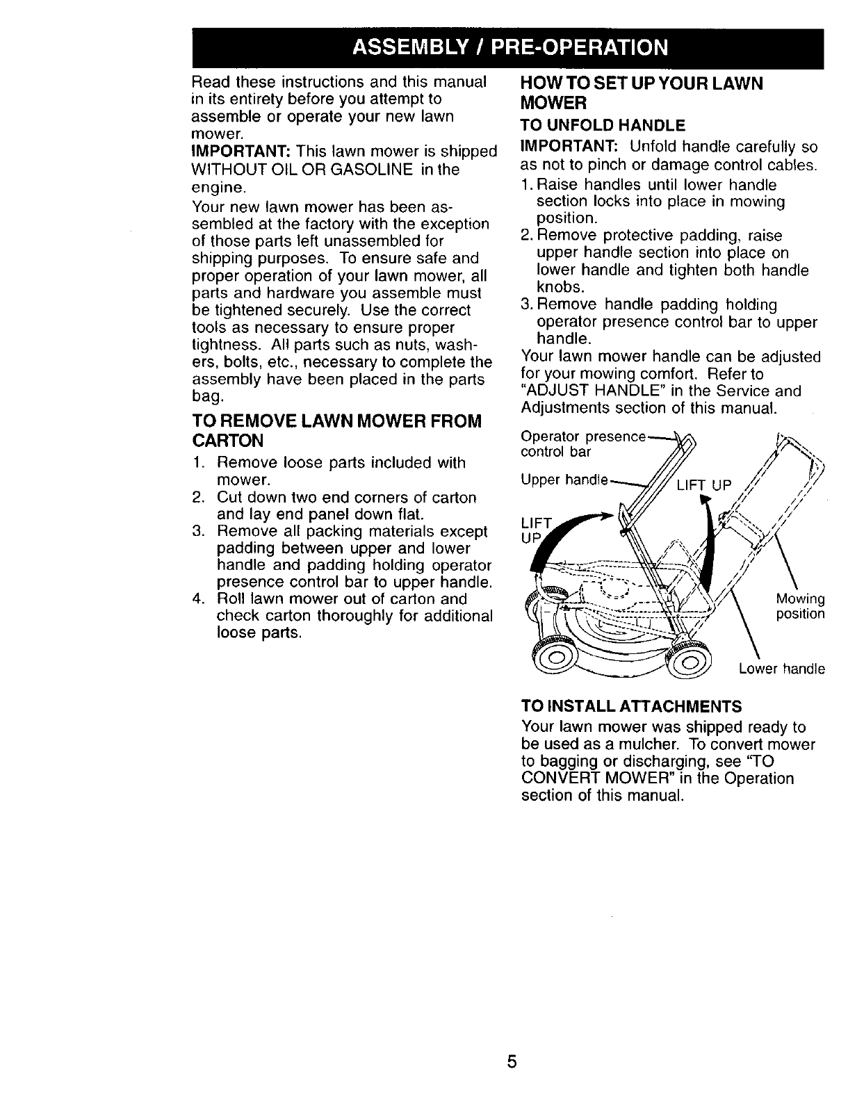 Assembly /Pre-Operation ...................... 5