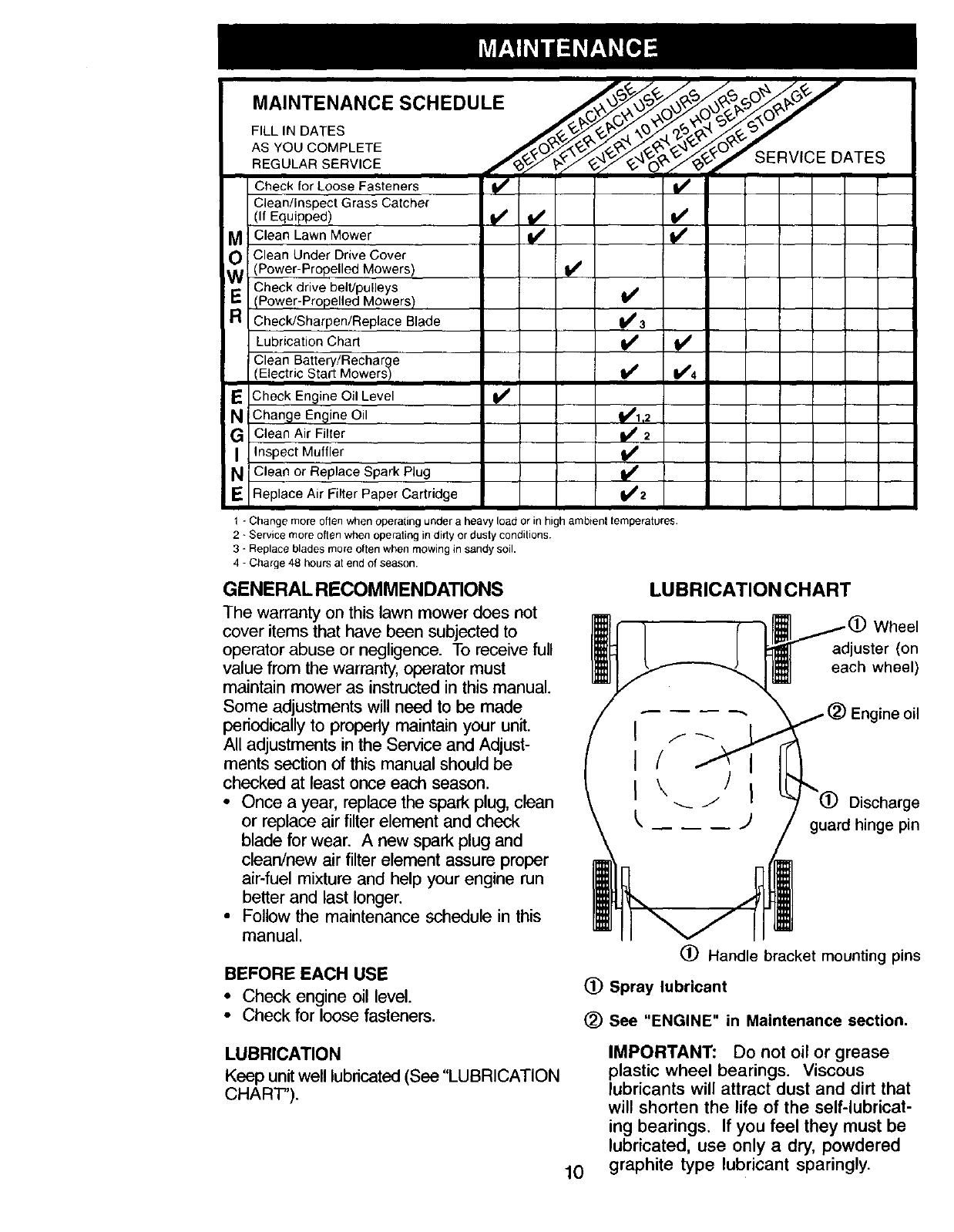 • Expendable items which become worn during normal use, such as rotary mower