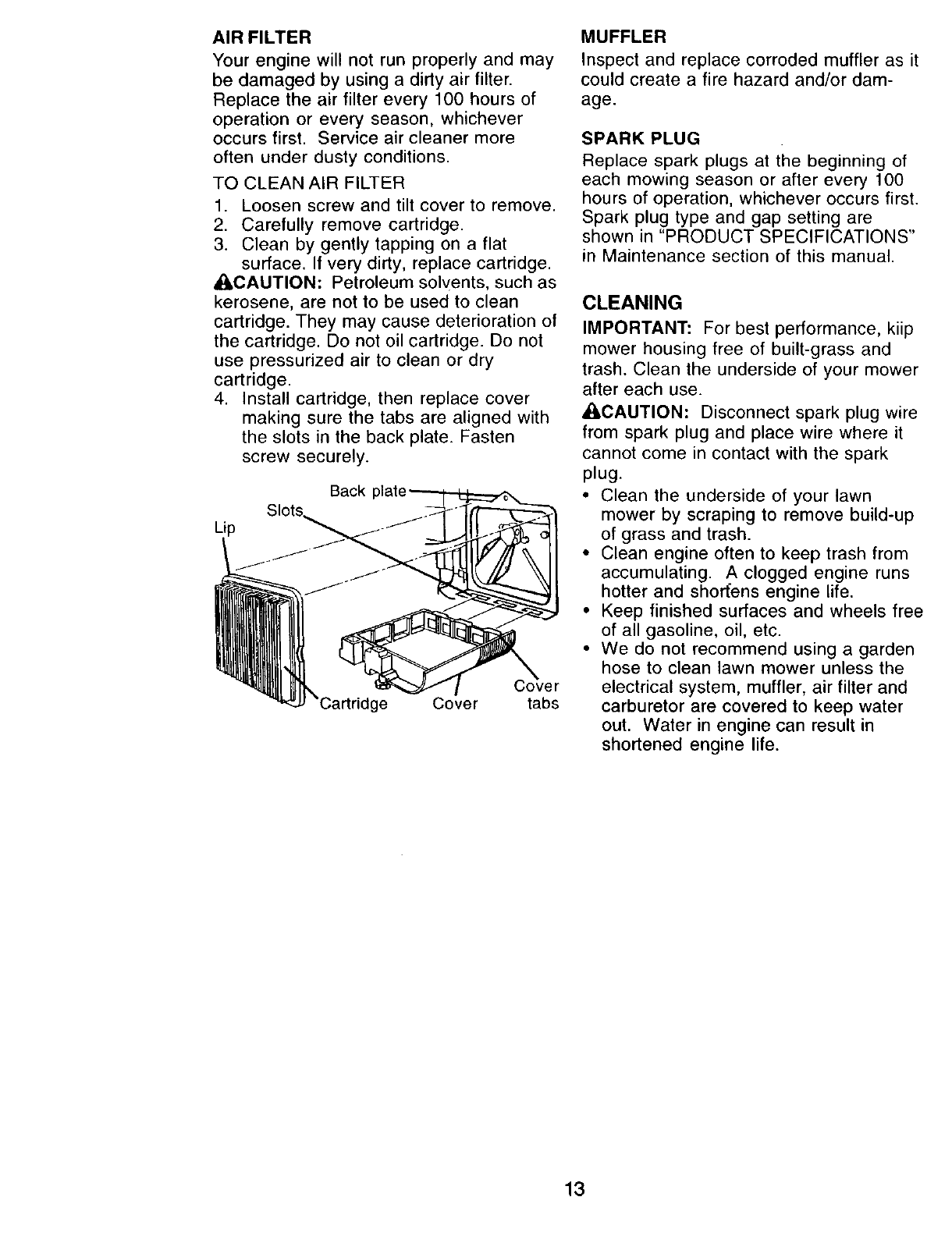 _:k CAUTION: Muffler and other engine