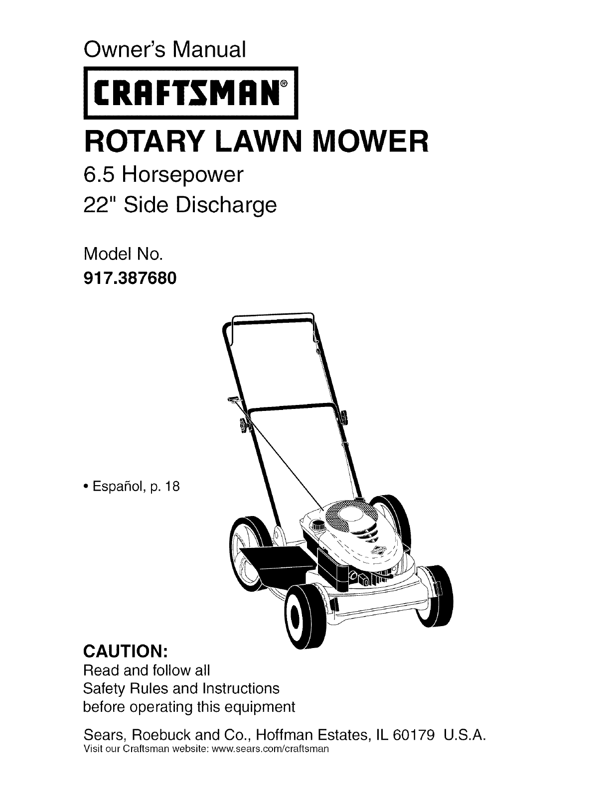 User Manual: Craftsman 917387680 917387680 CRAFTSMAN LAWN MOWER - Manuals and Guides View the owners manual for your CRAFTSMAN LAWN MOWER #917387680. Home:Lawn & Garden Parts:Craftsman Parts:Craftsman LAWN MOWER Manual