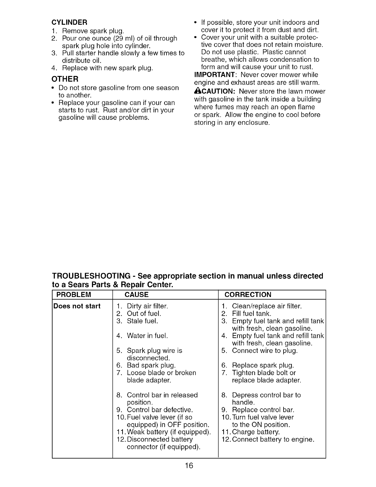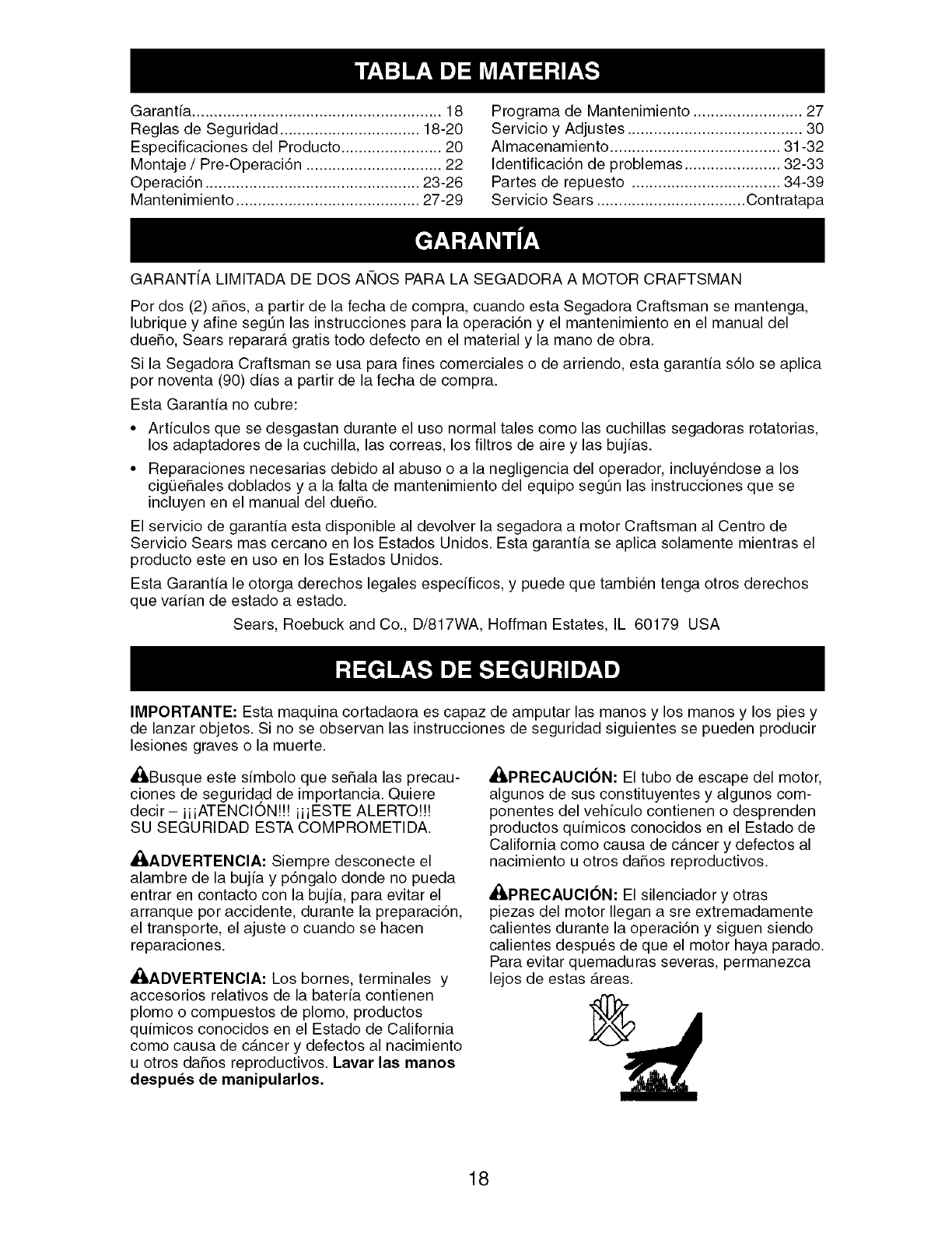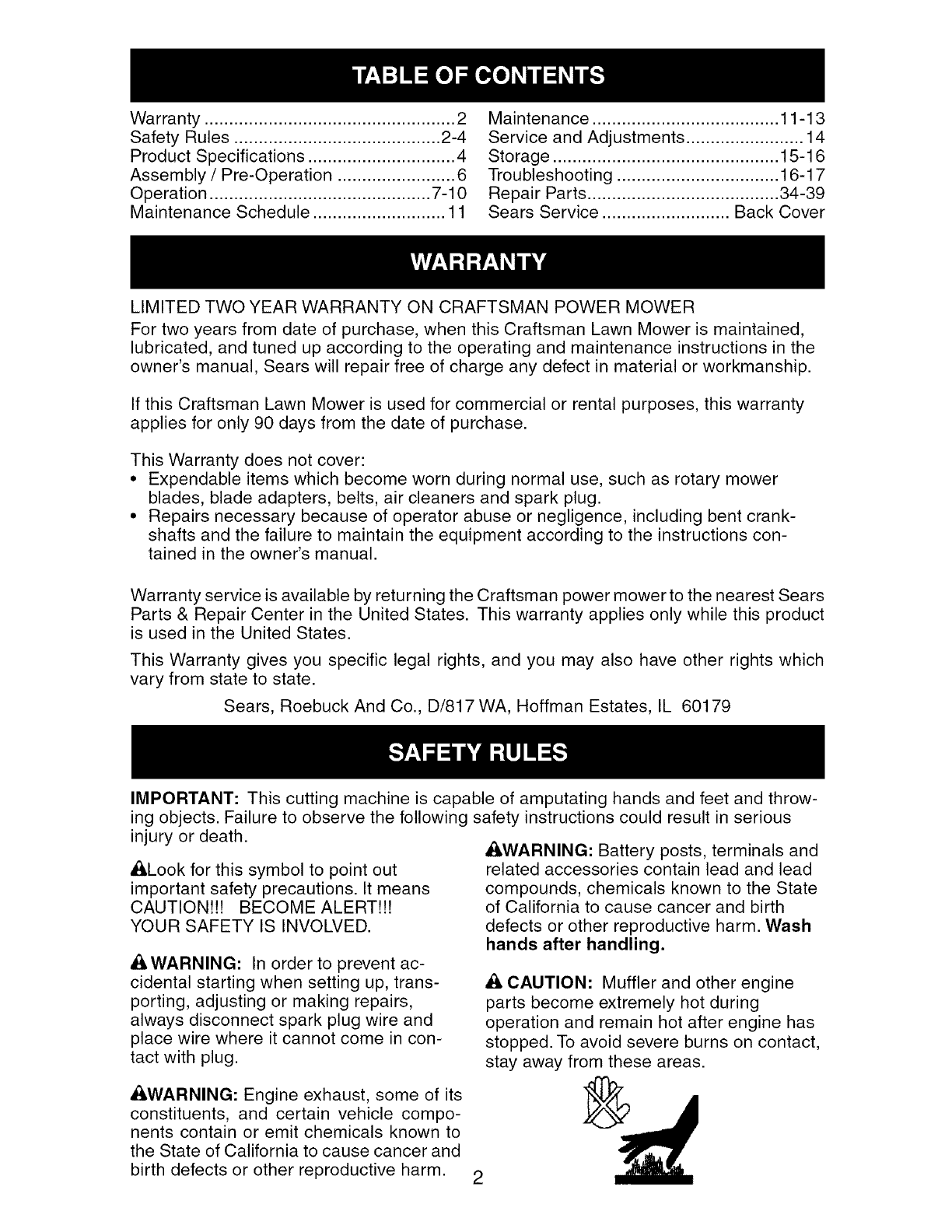 Warranty service is available by returning the Craftsman power mower to the nearest Sears