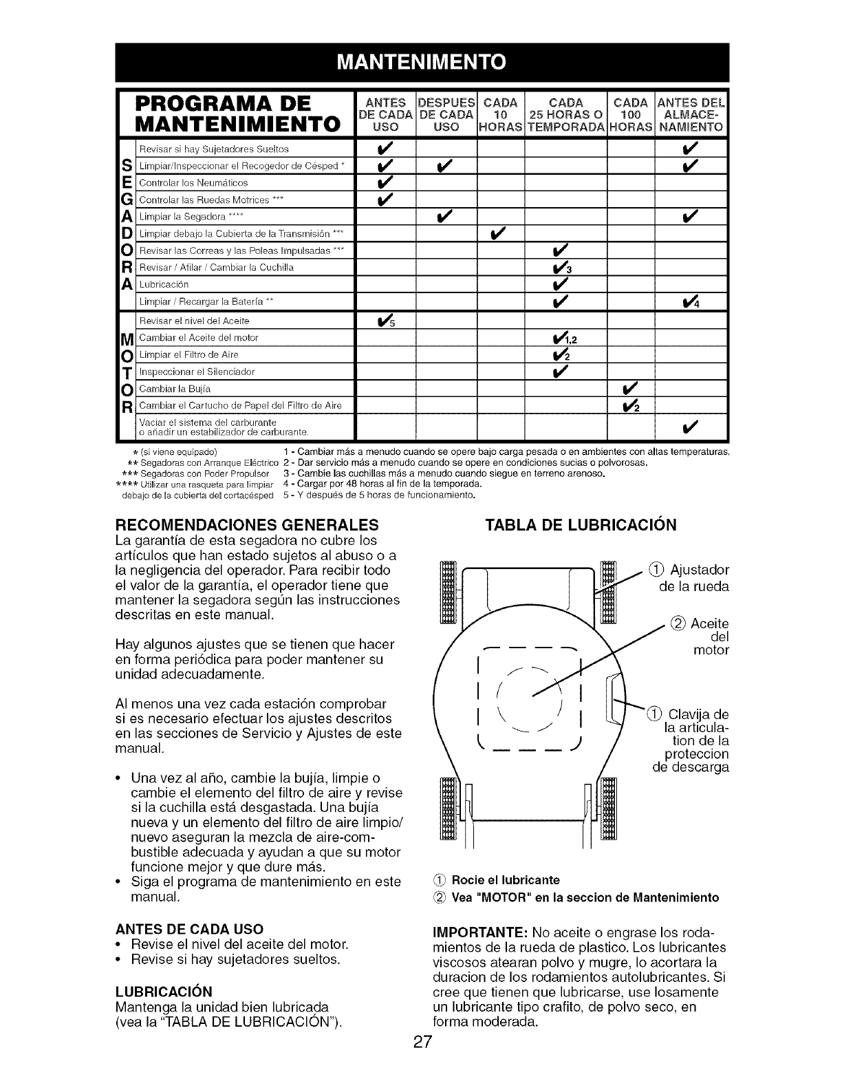 lubricated, and tuned up according to the operating and maintenance instructions in the