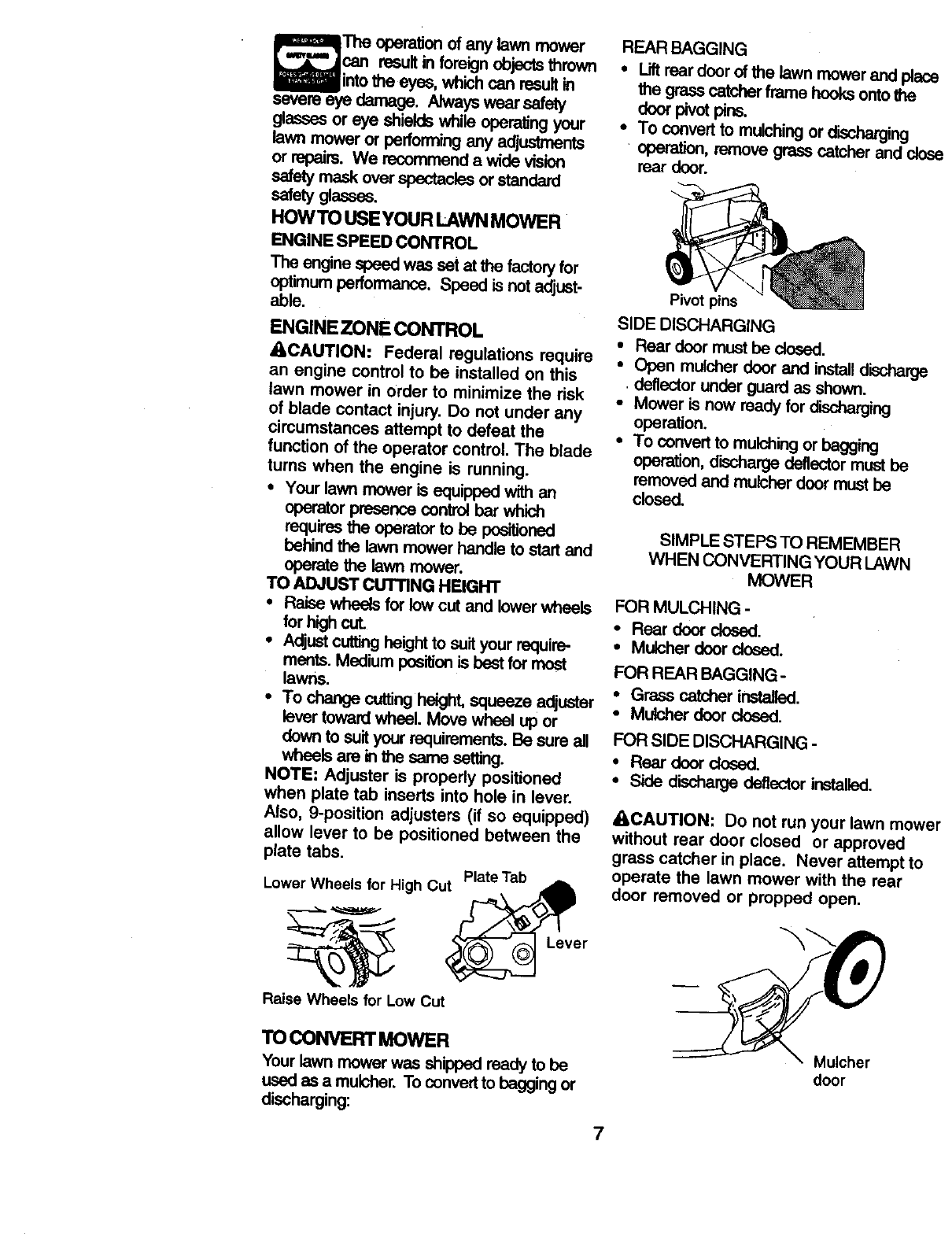 Warranty service is available by returning the Craftsman power mower to the nearest