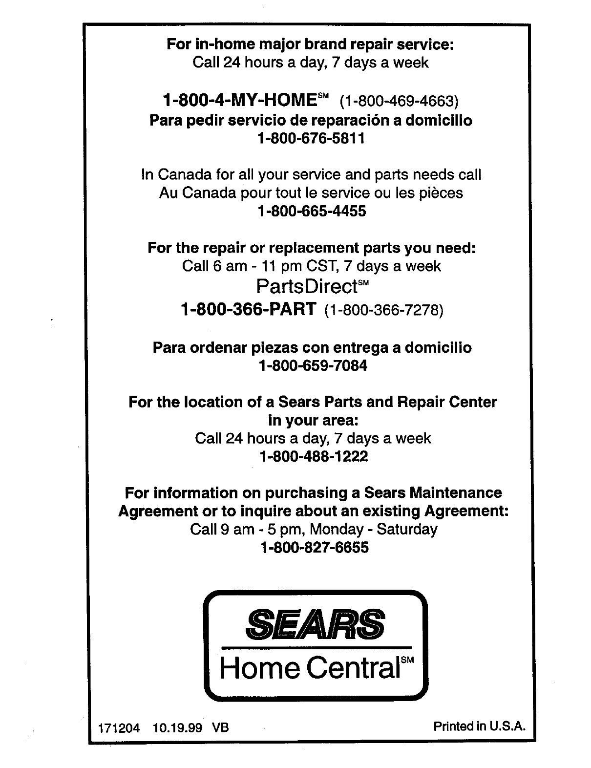 the owner's manual, Sears will repair free of charge any defect in material or workman-