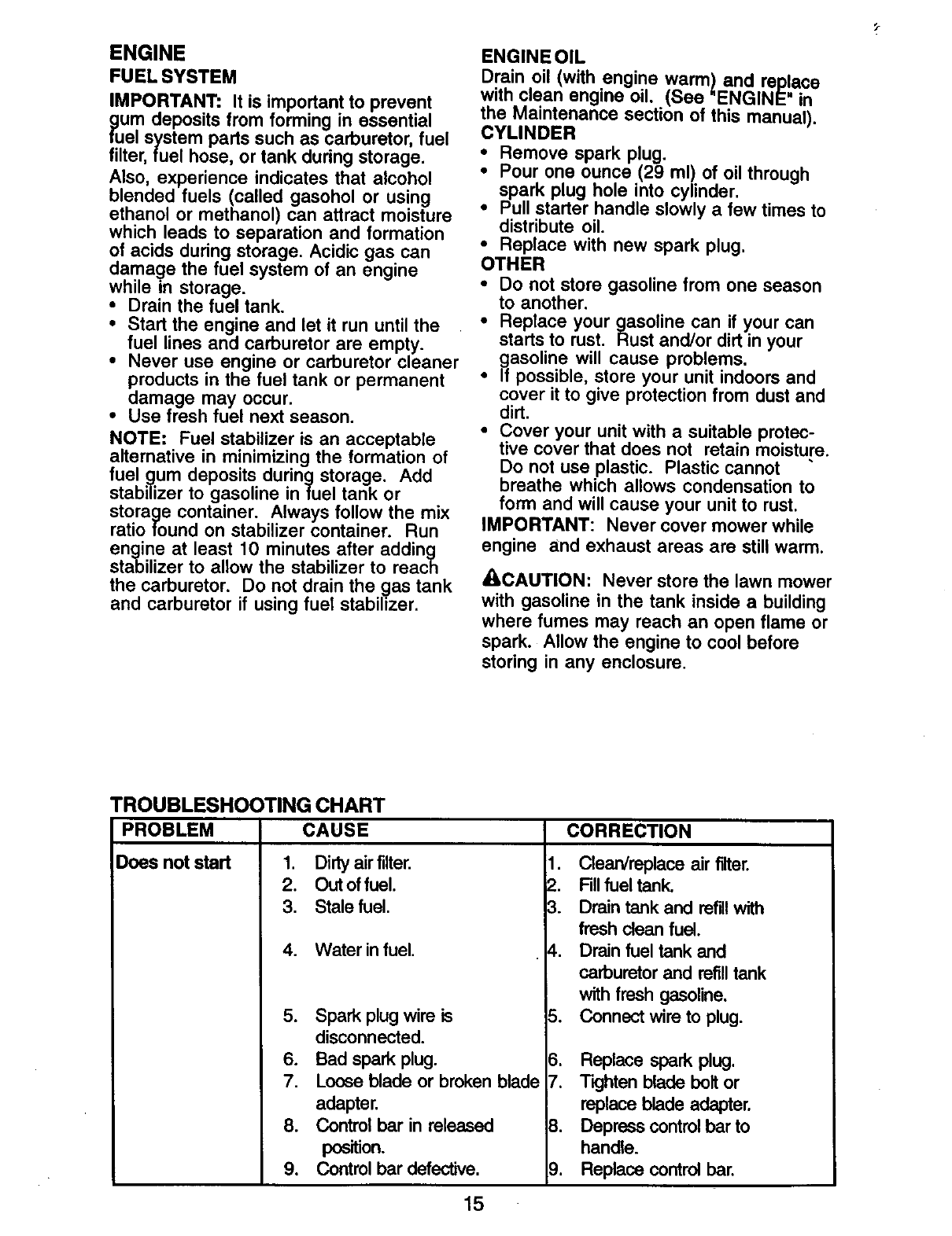 lubricated, and tuned up according to the operating and maintenance instructions in