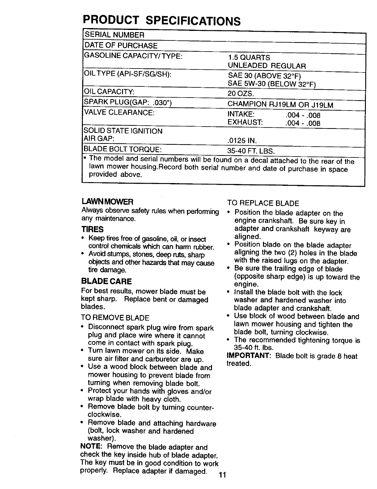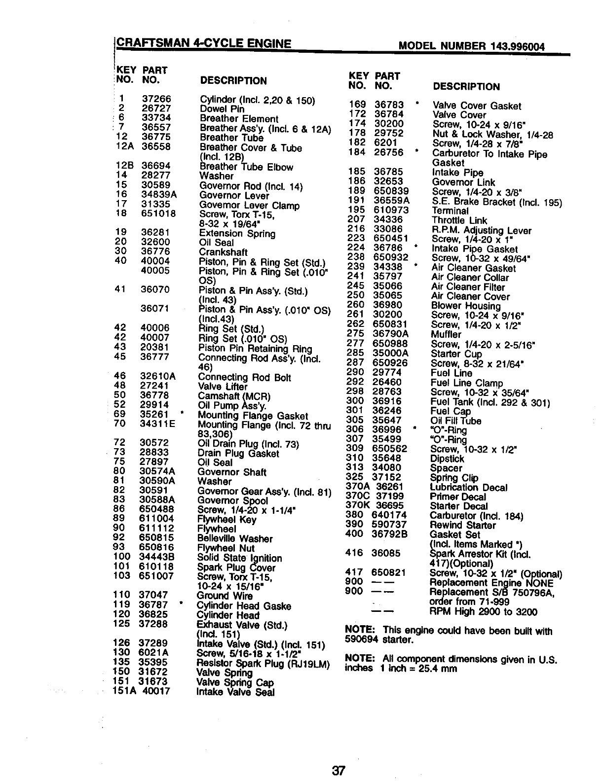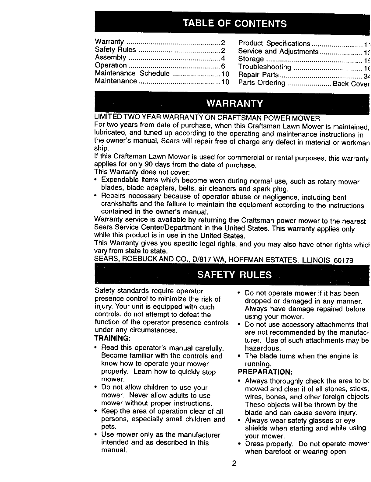 LIMITED TWO YEAR WARRANTY ON CRAFTSMAN POWER MOWER