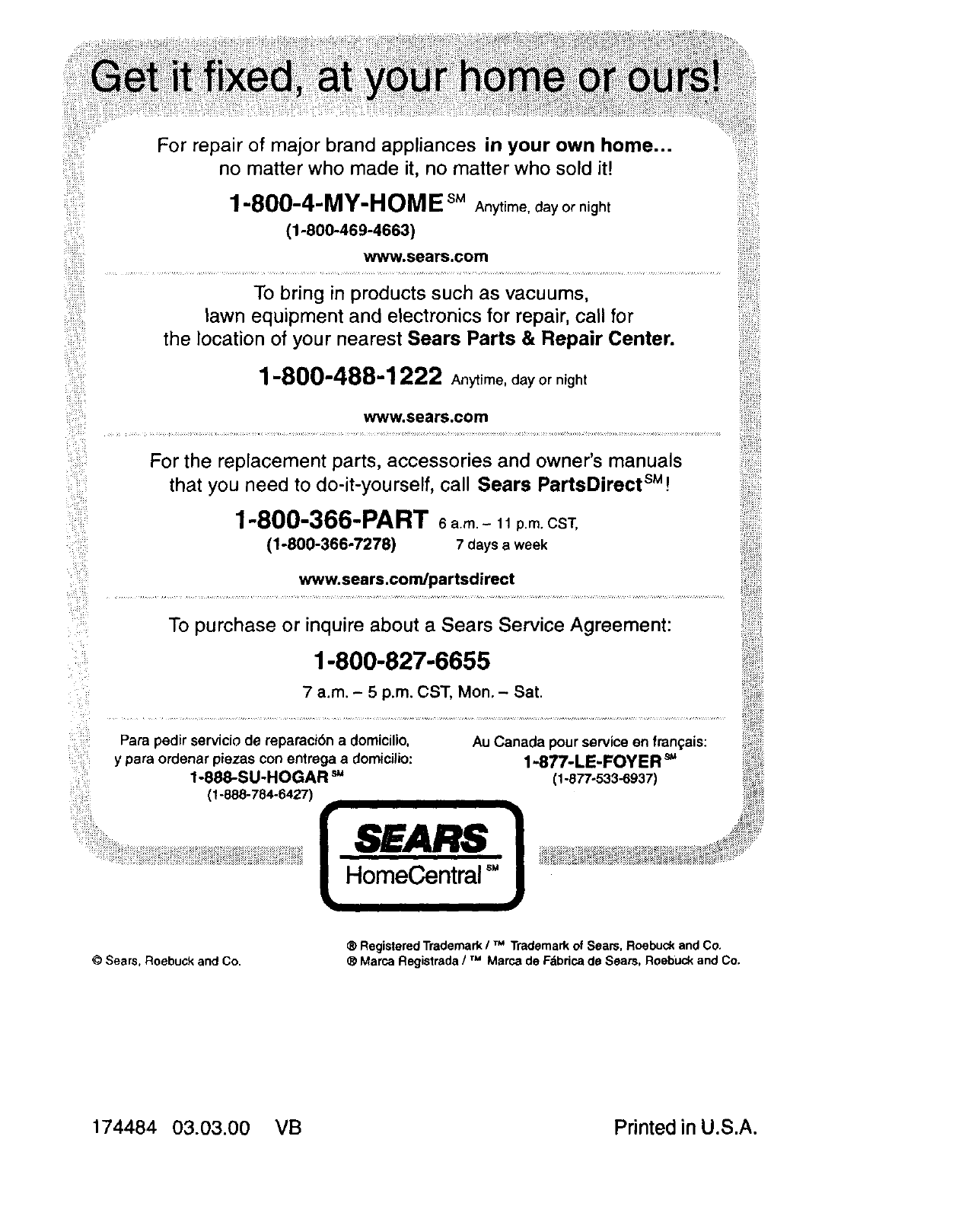 ®Registered Trademark /T. Trademark of Sears, Roebuck and Co.