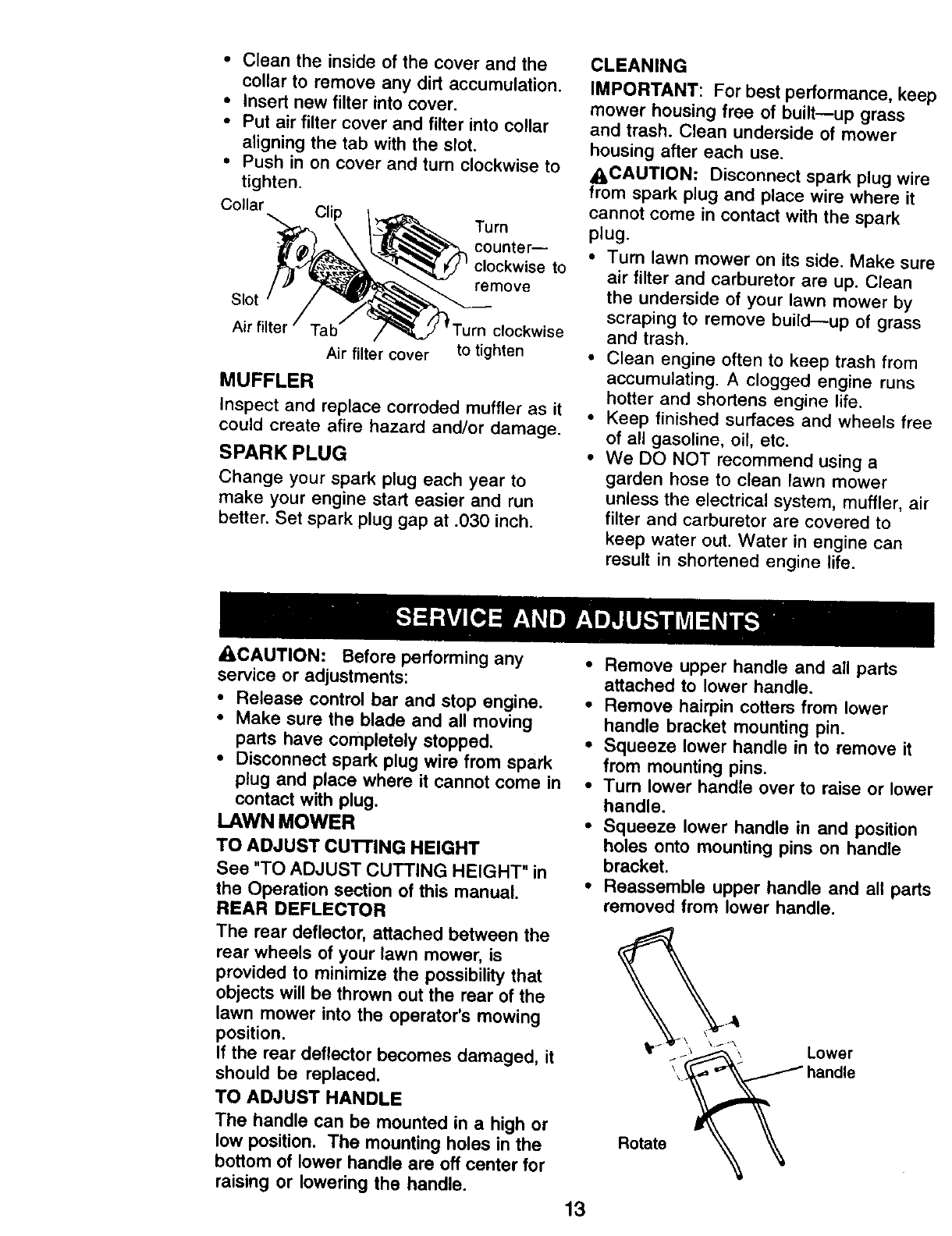 Warranty service is available by returning the Craftsman power mower to the neare,,