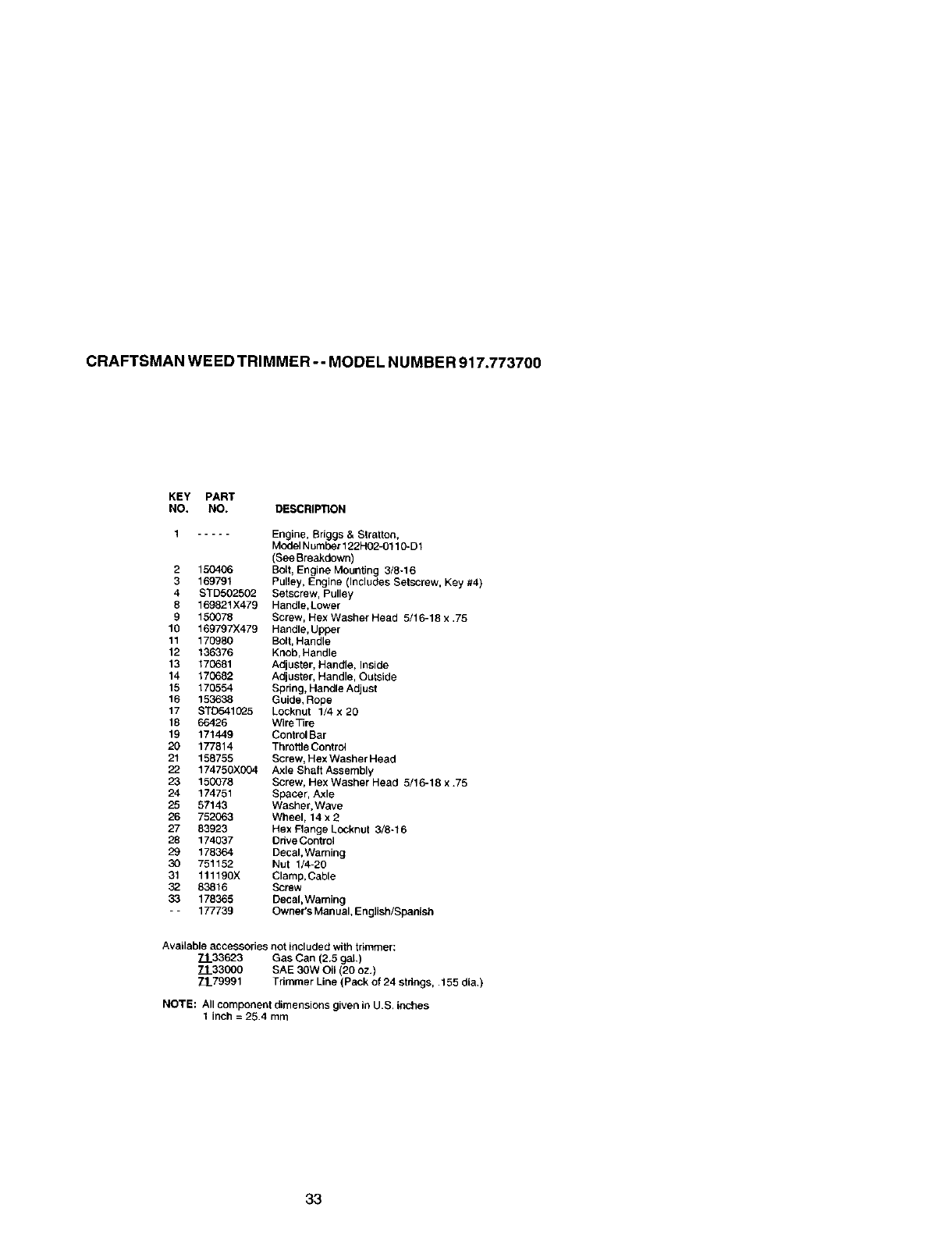 User Manual: Craftsman 917773700 917773700 CRAFTSMAN HIGH WHEEL WEED TRIMMER - Manuals and Guides View the owners manual for your CRAFTSMAN HIGH WHEEL WEED TRIMMER #917773700. Home:Lawn & Garden Parts:Craftsman Parts:917773700 Craftsman Grass trimmer (weed wacker) Manual