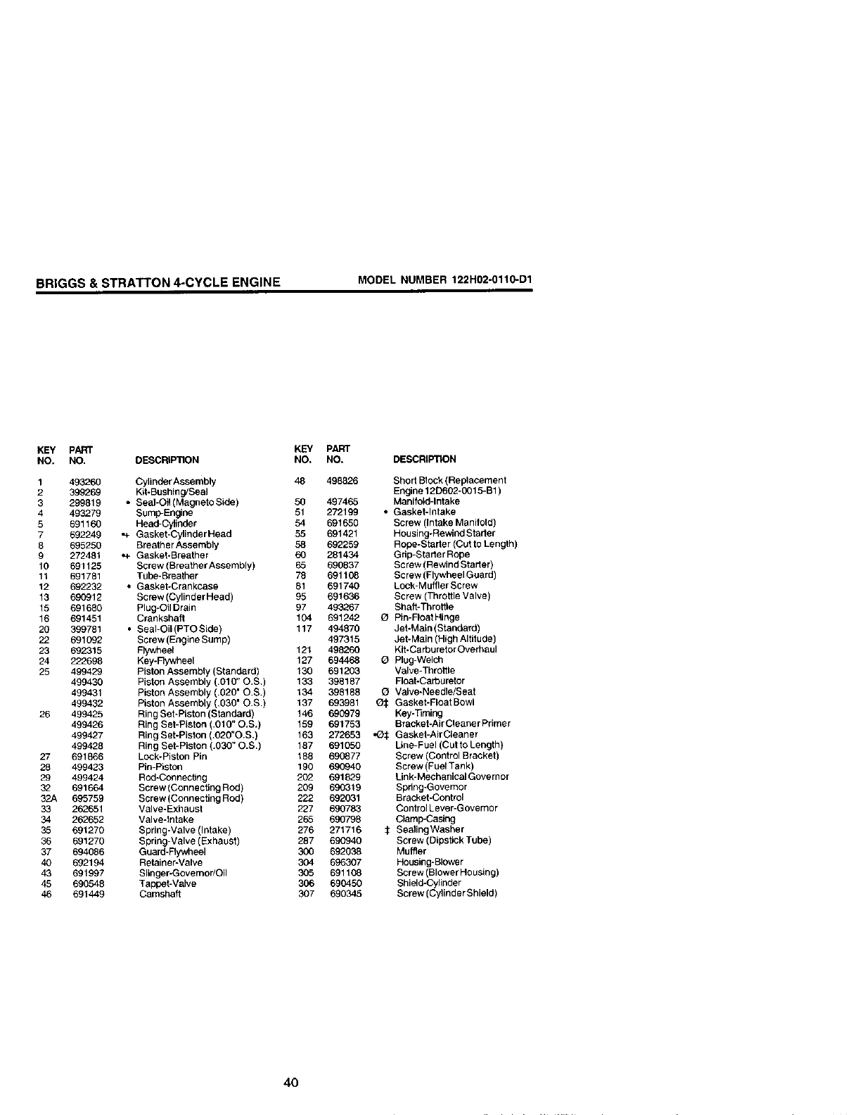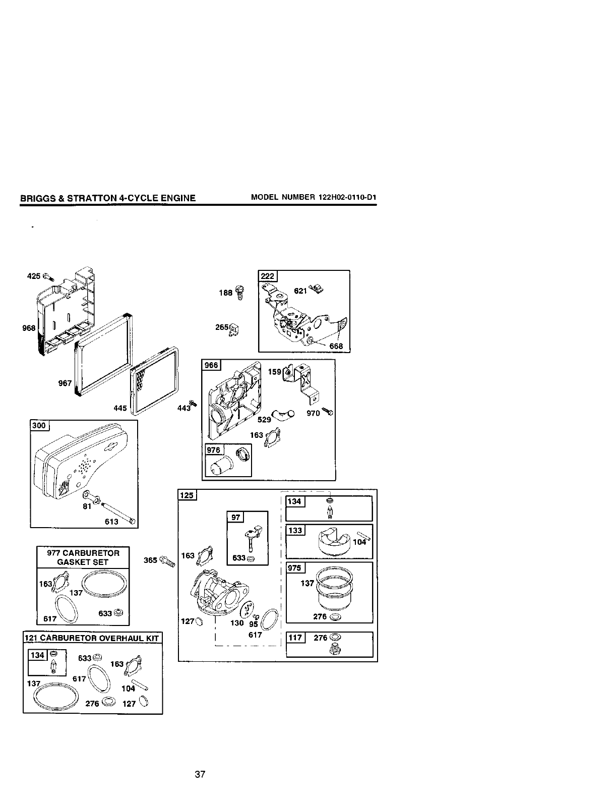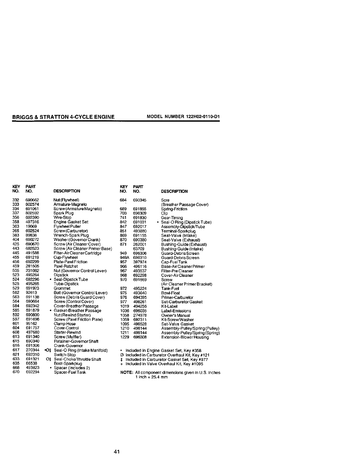 O Included in Carburetor Overhaul Kit, Key #121
