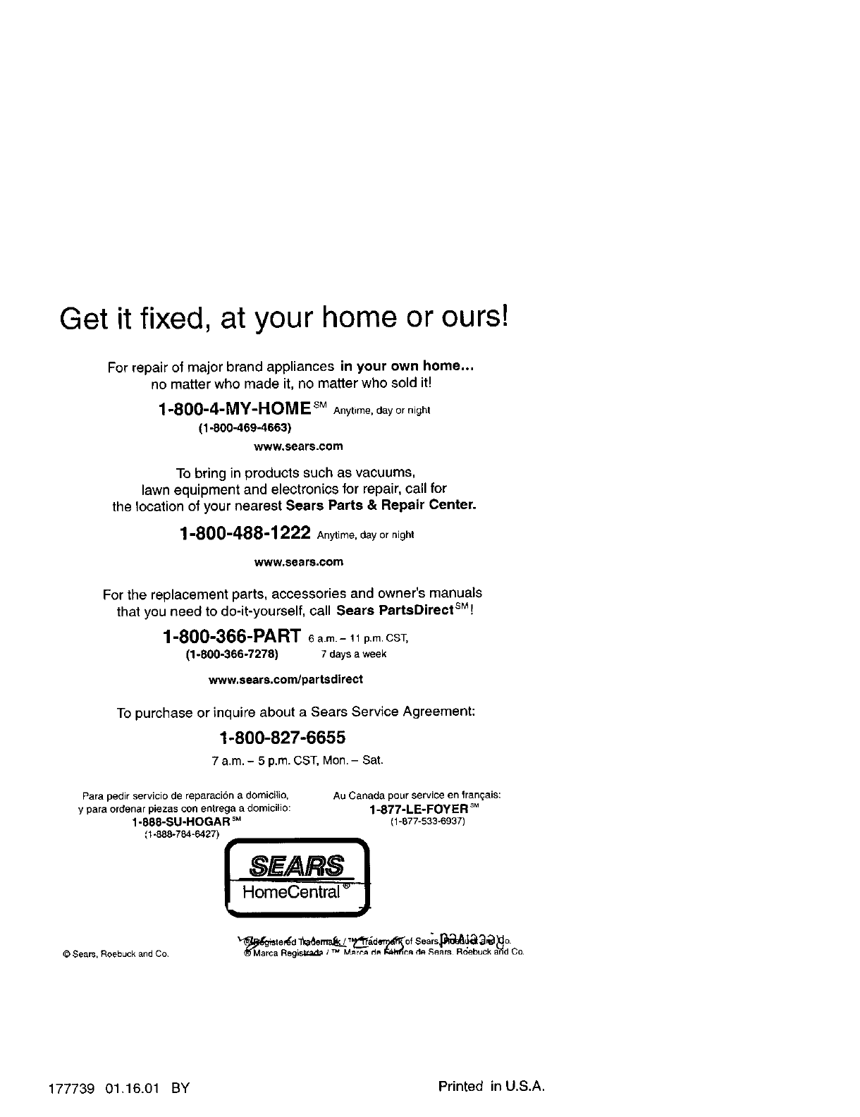 177739 01.16.01 BY Printed in U.S.A.