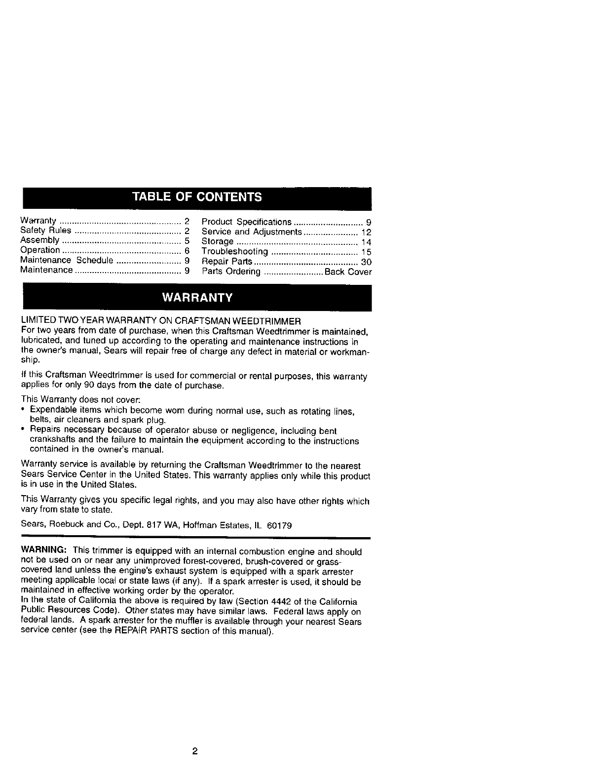 LIMITED TWO YEAR WARRANTY ON CRAFTSMAN WEEDTRIMMER