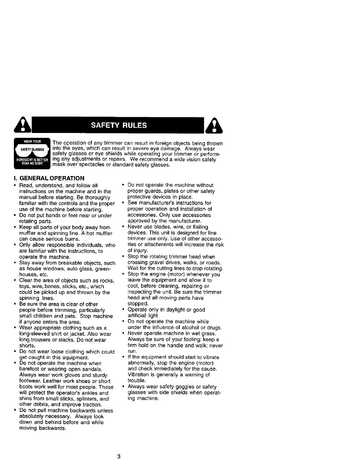 safety glasses or eye shields while operating your tr mmer or perform-