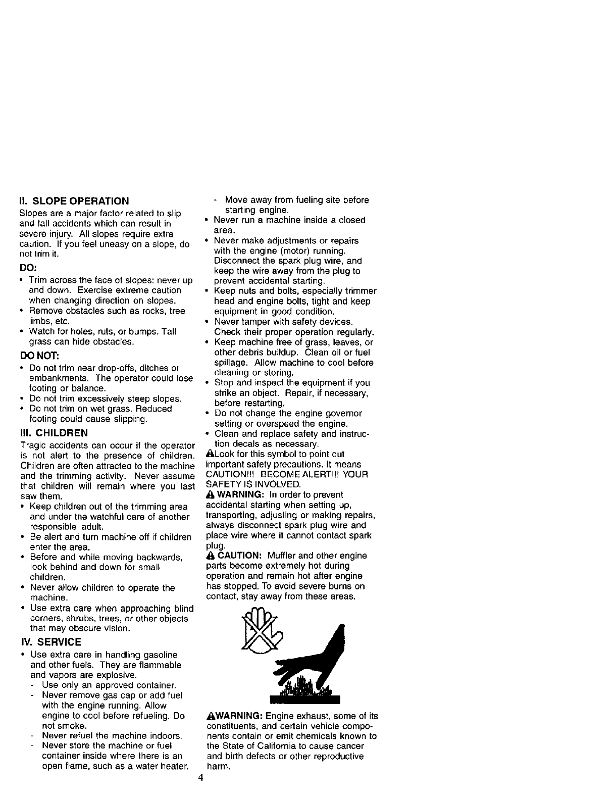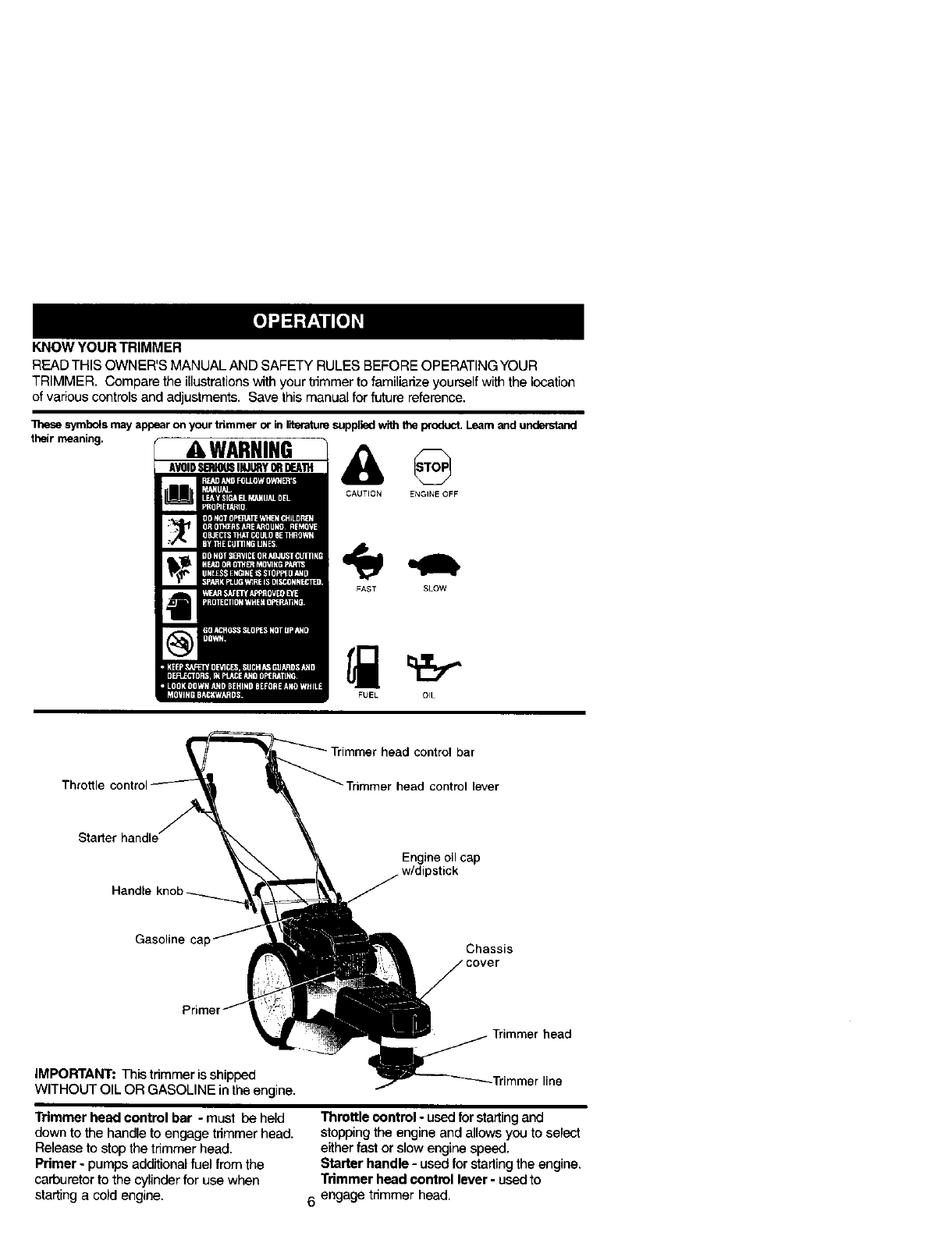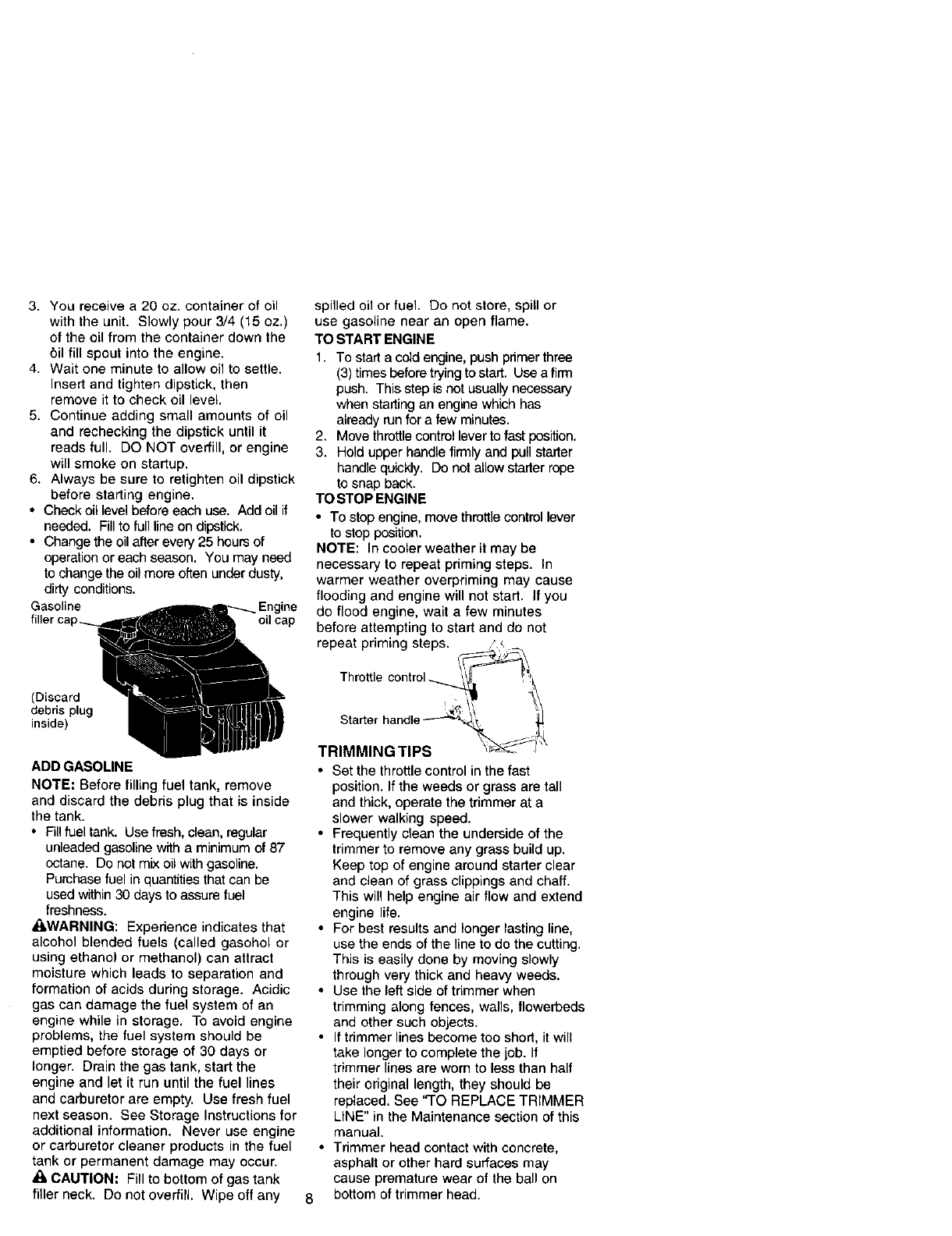 WARNING= This trimmer is equipped with an internal combustion engine and should