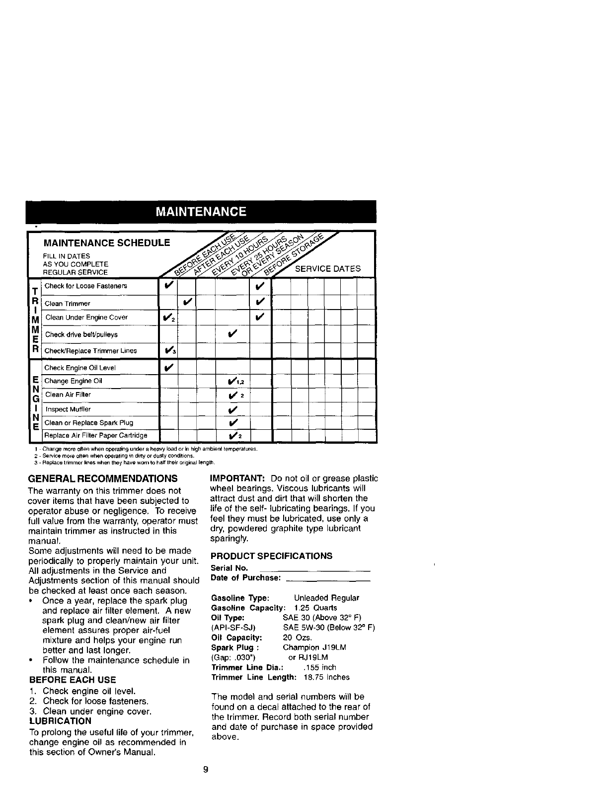 Maintenance Schedule .......................... 9