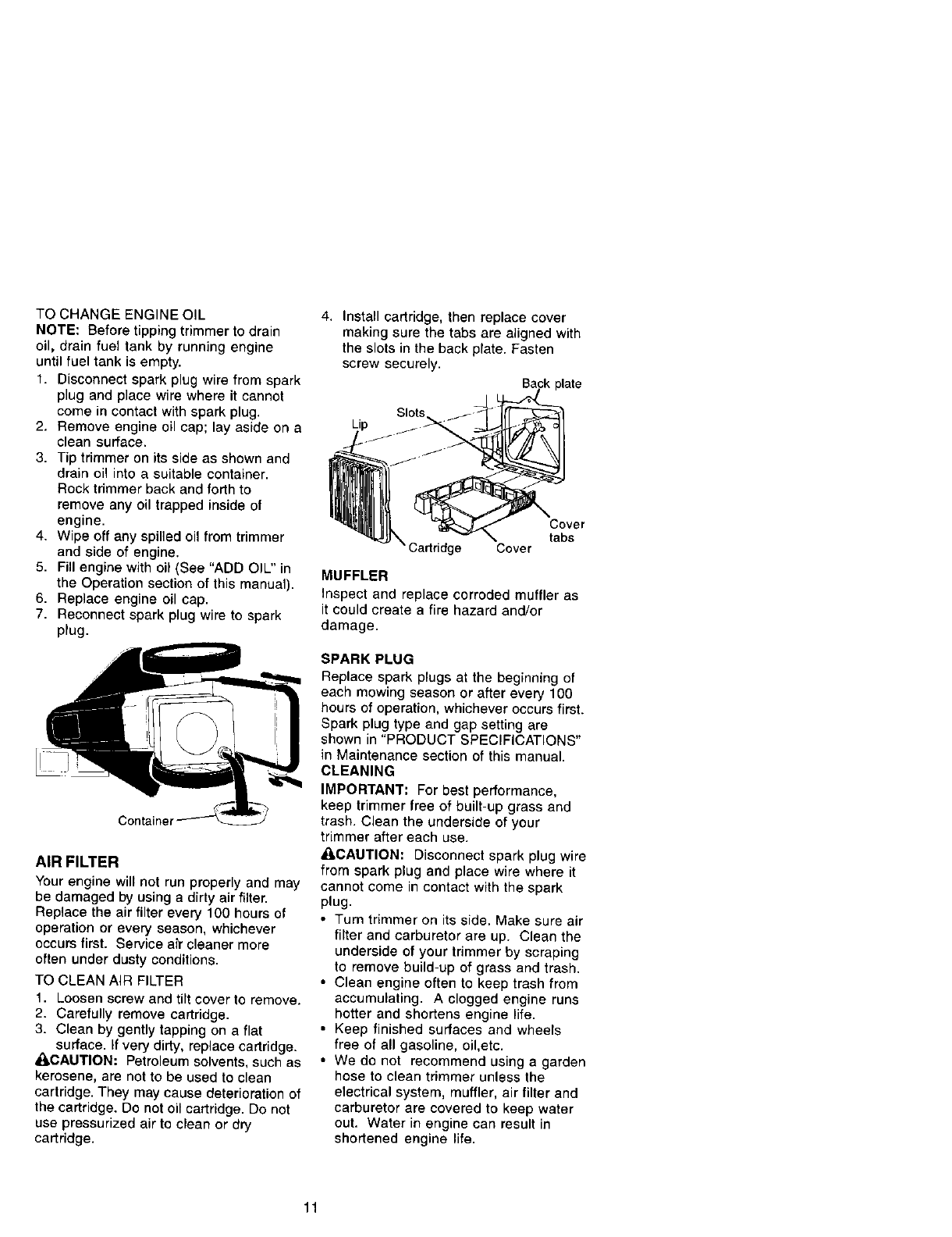 federal lands. A spark arrester for the muffler is available through your nearest Sears
