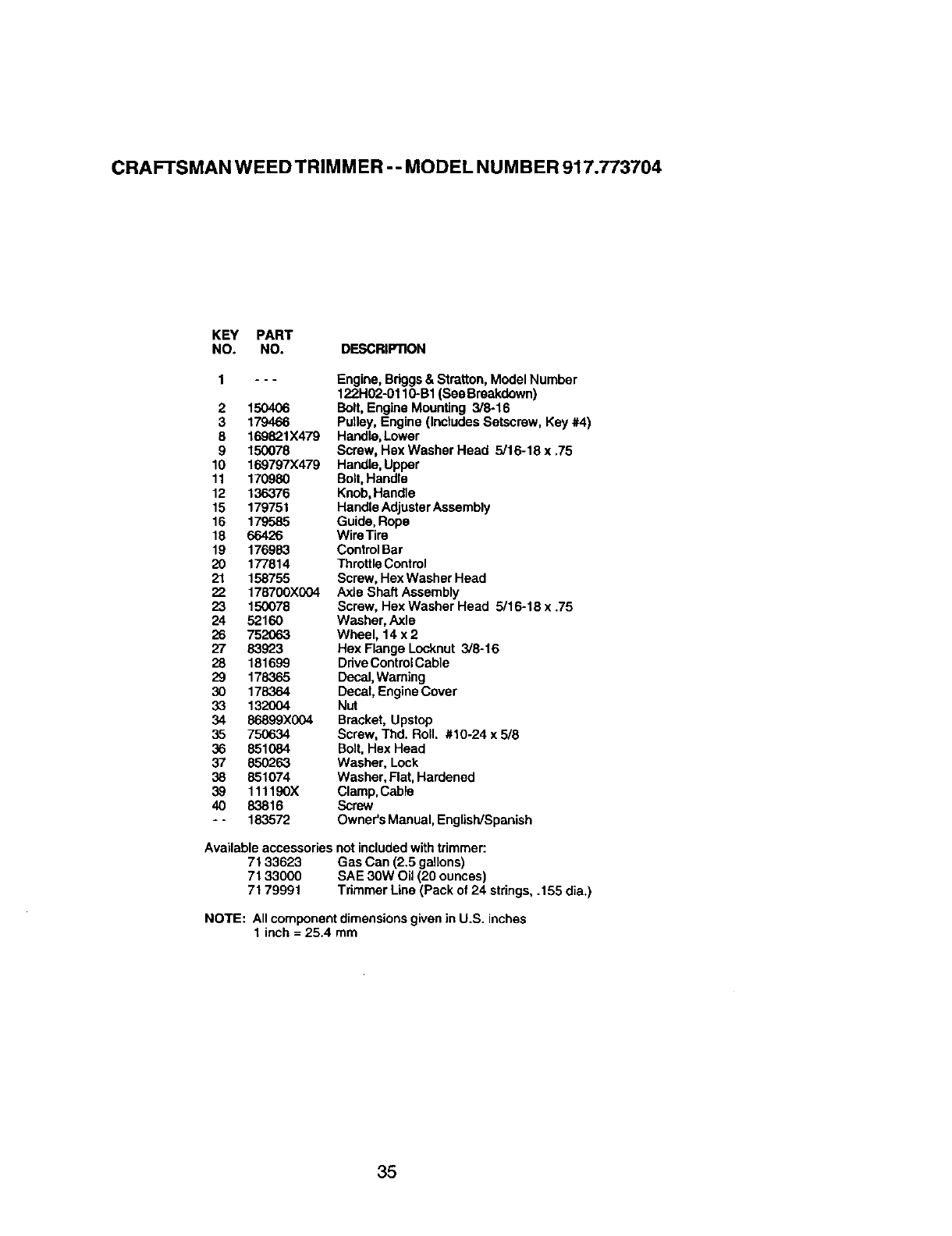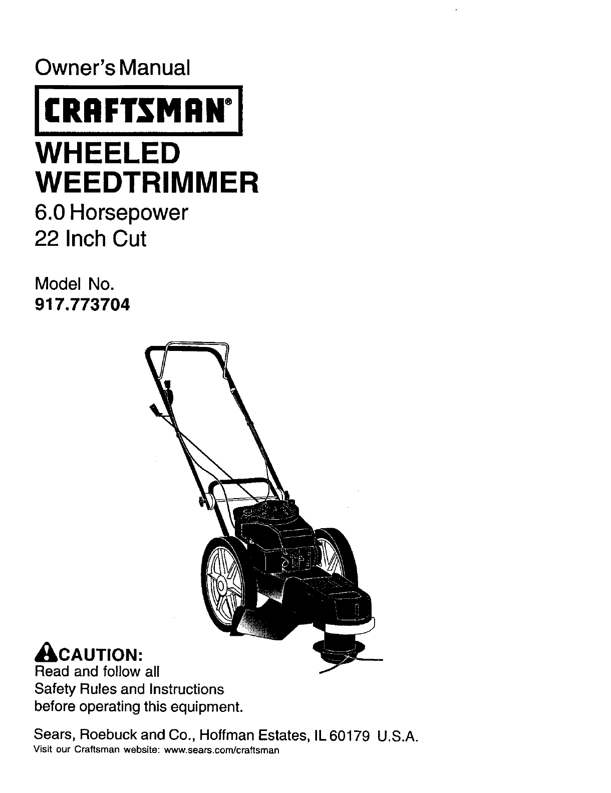 User Manual: Craftsman 917773704 917773704 CRAFTSMAN HIGH WHEEL WEED TRIMMER - Manuals and Guides View the owners manual for your CRAFTSMAN HIGH WHEEL WEED TRIMMER #917773704. Home:Lawn & Garden Parts:Craftsman Parts:917773704 Craftsman Grass trimmer (weed wacker) Manual