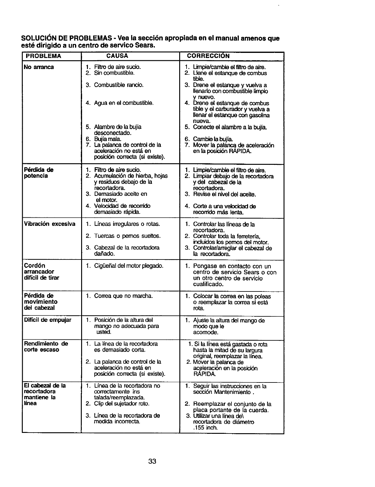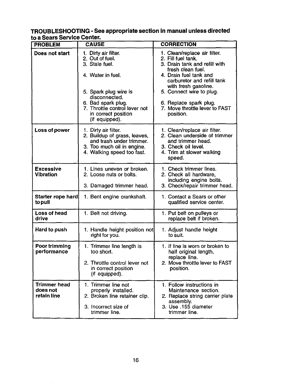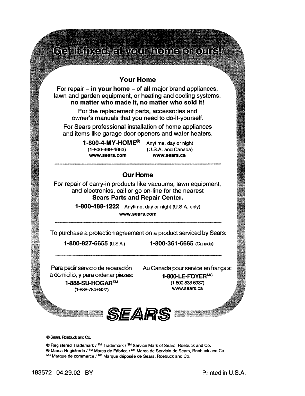 Sears Service ......................... Back Cover