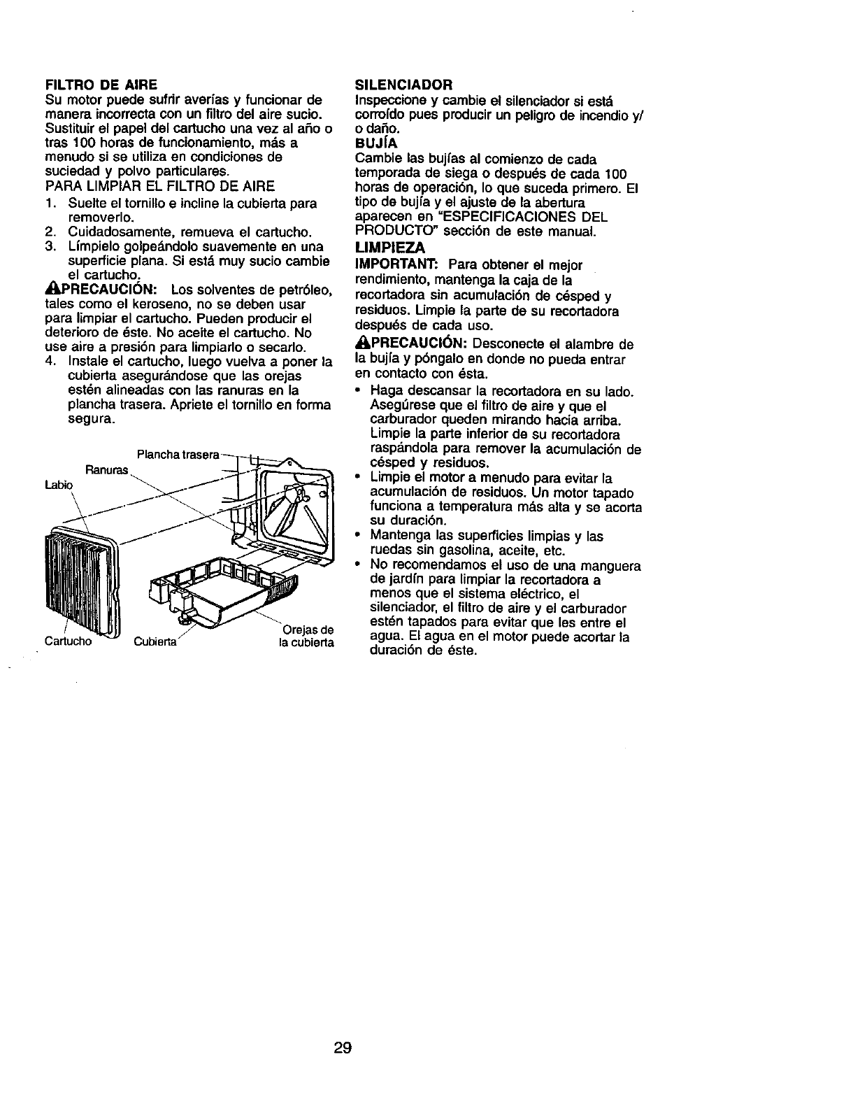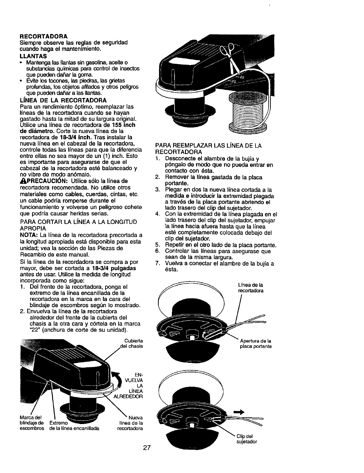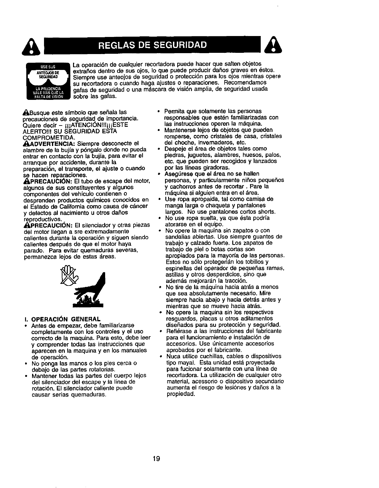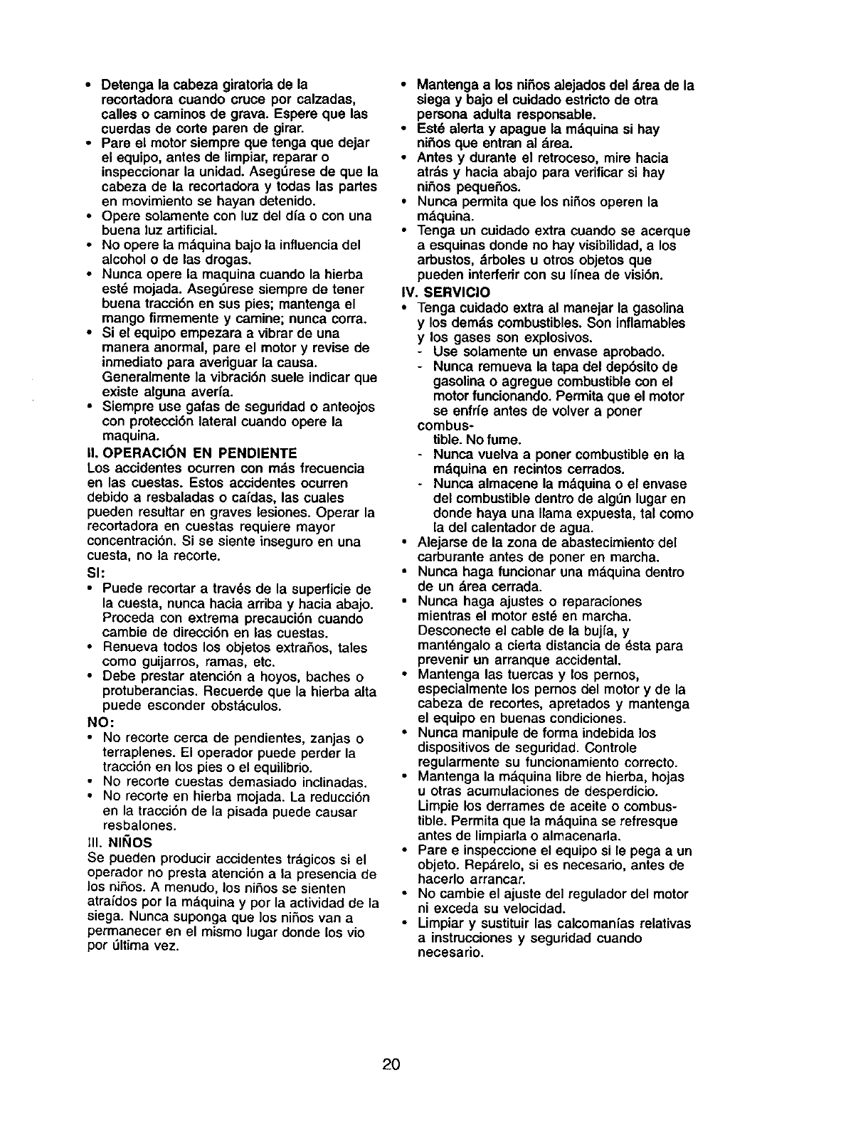 extrema precauci6n cuando opere la recortadora en o cerca de las cuestas y cualquler obst=tculo qua pu-
