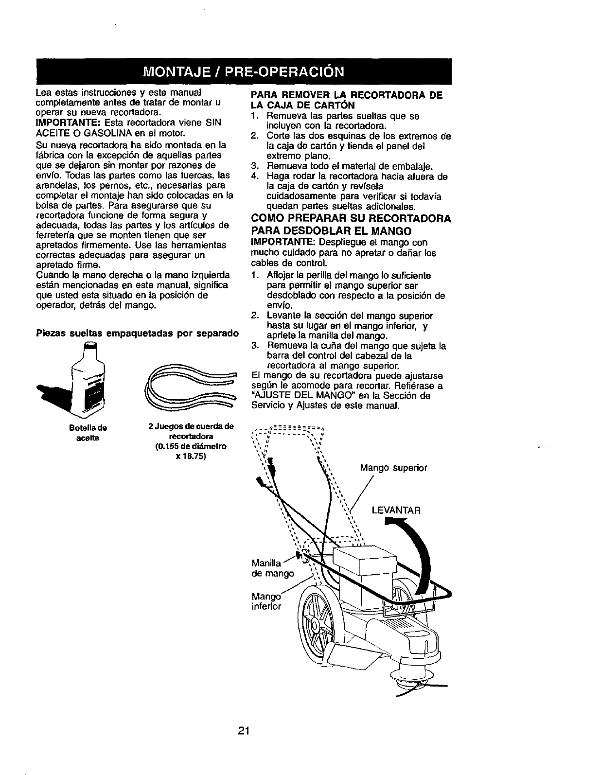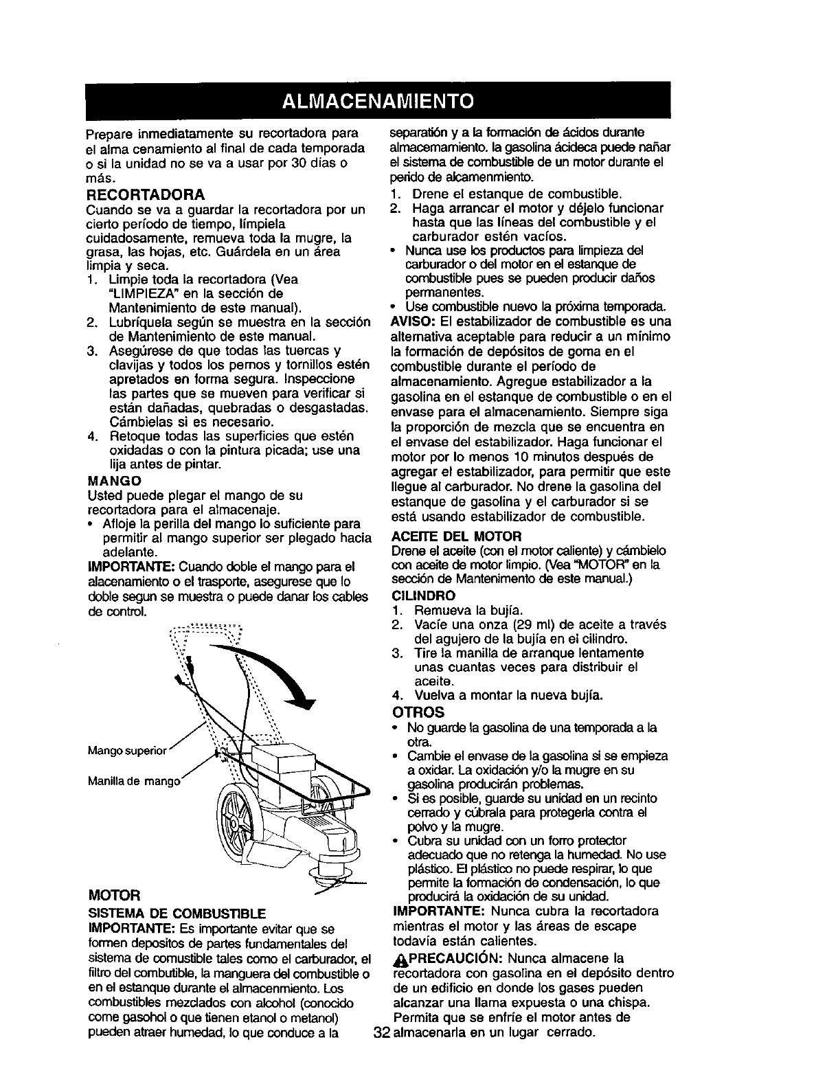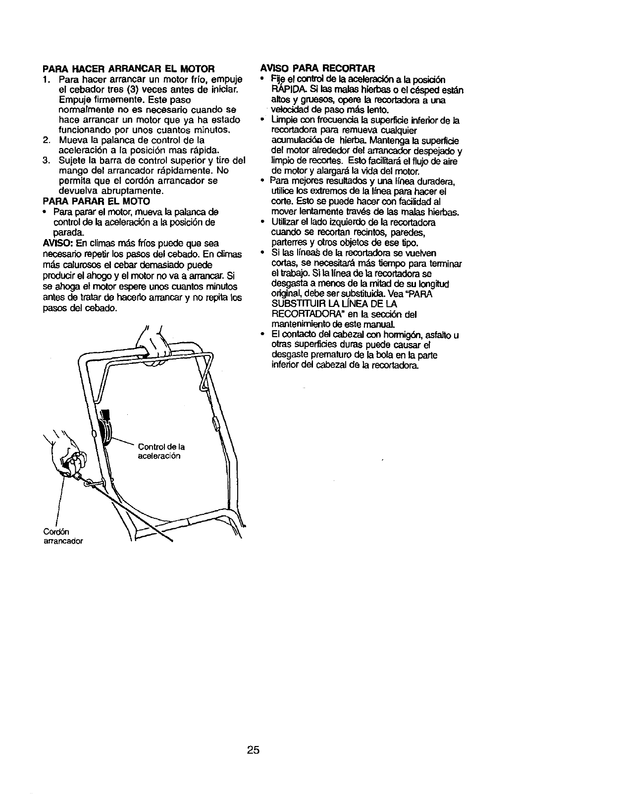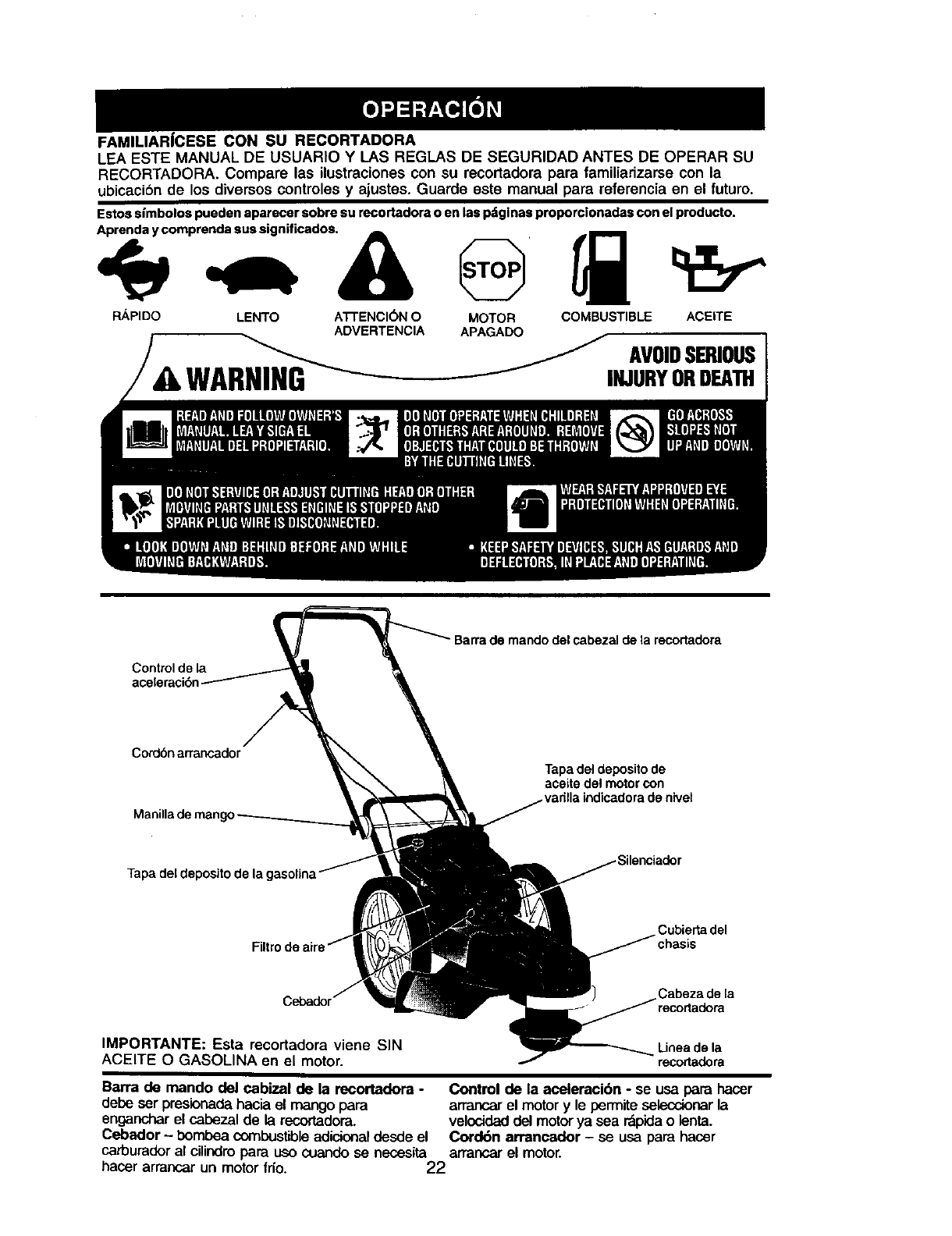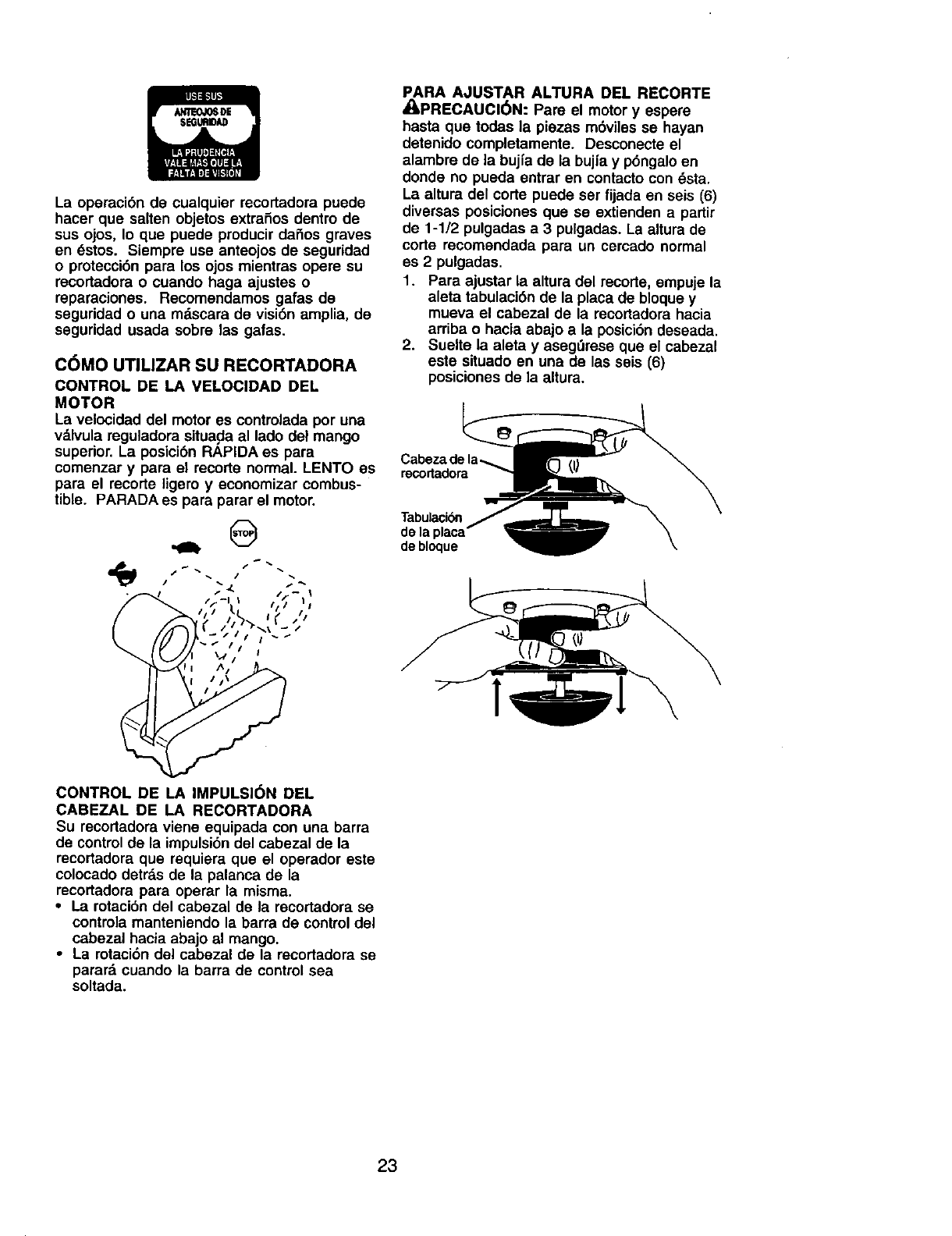 en cuestas. Siga las Instrucciones adicionales an este manual para recortar con seguridad en las cuestas.