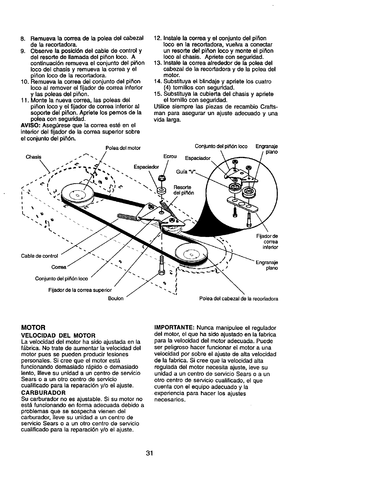 Use extrema precauci6n y evlte cambloa de dlreccl6n o movimlentos bruscos y repentlnos cuando recorte