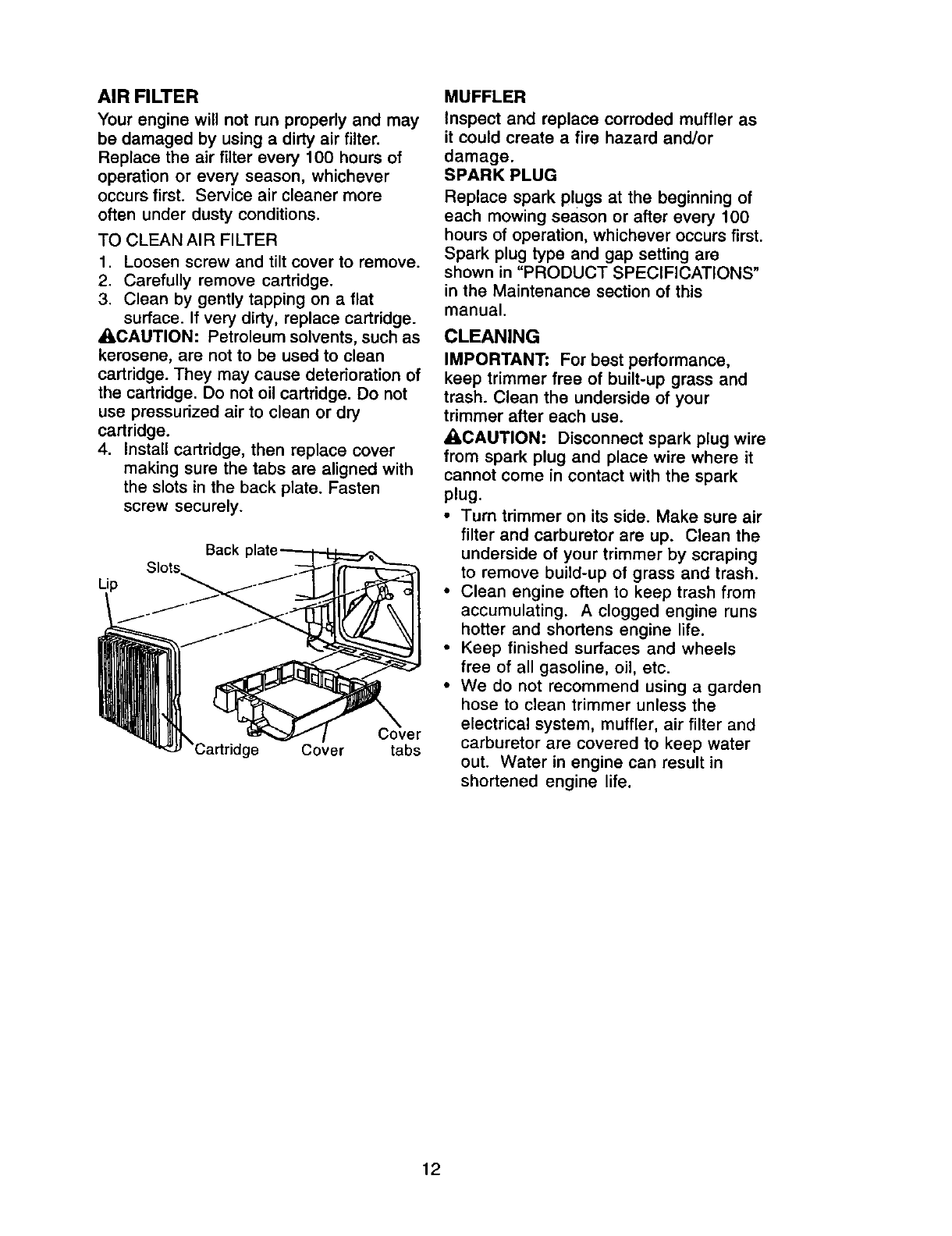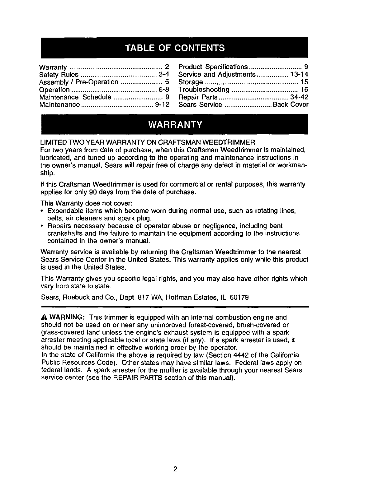 federal lands. A spark arrester for the muffler is available through your nearest Sears