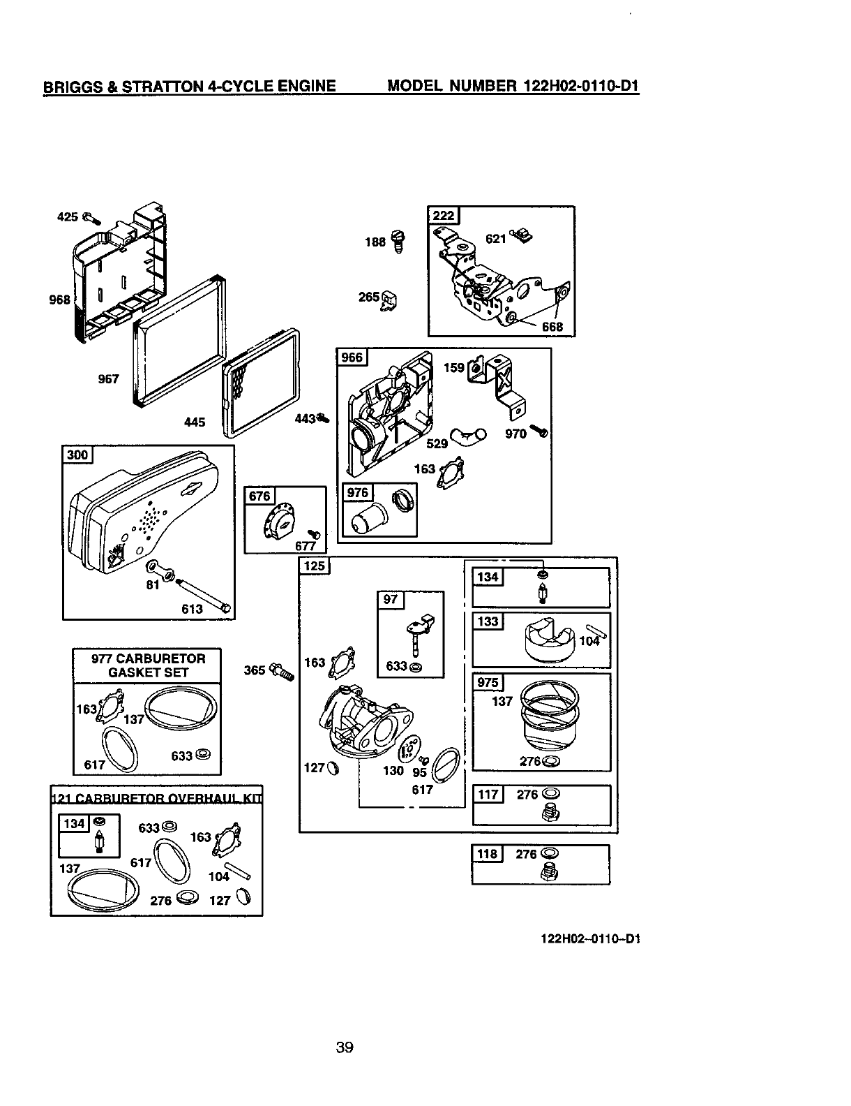 Included in Carburetor Overhaul Kit, Key No. 121