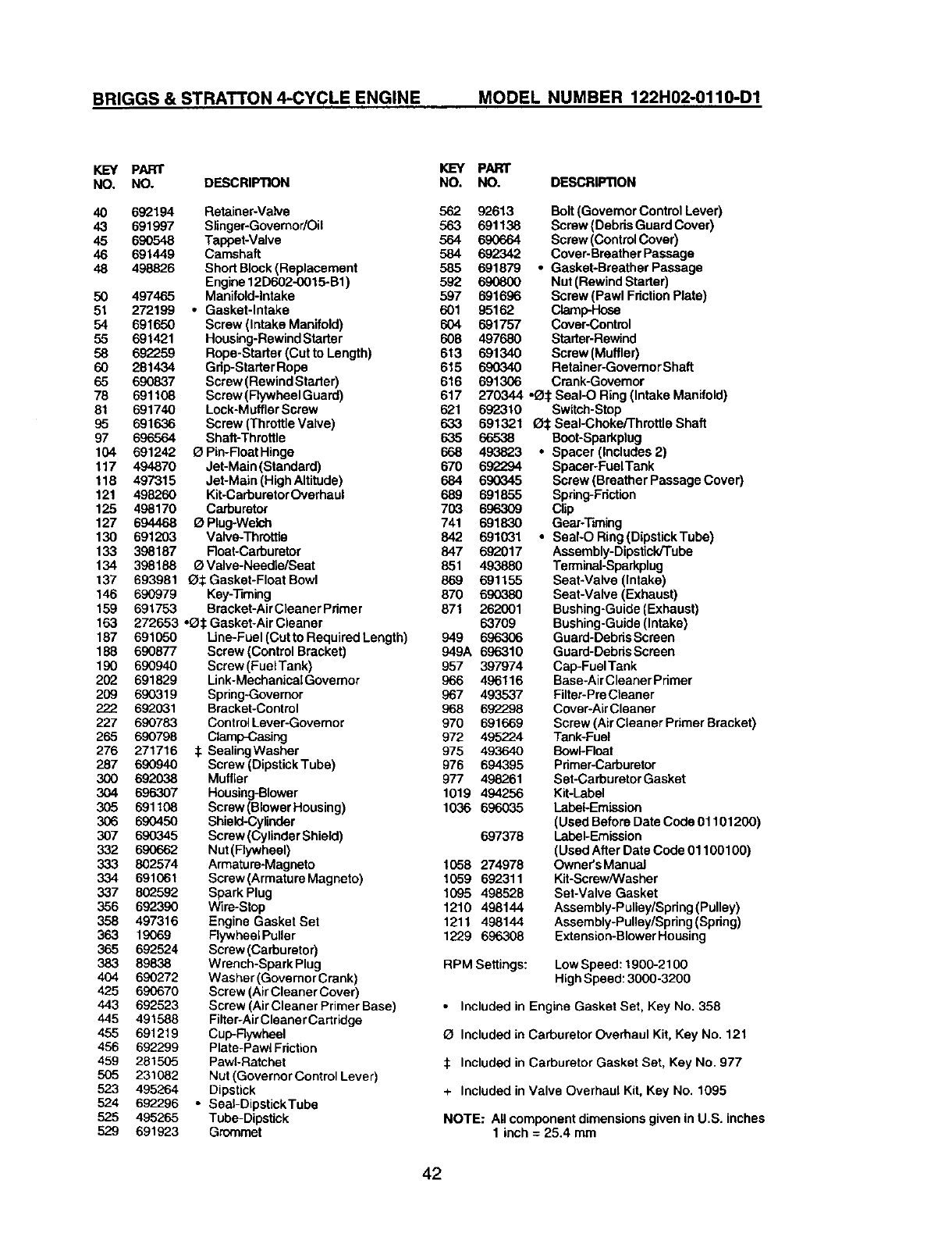 + Included in Valve Overhaul Kit, Key No. 1095