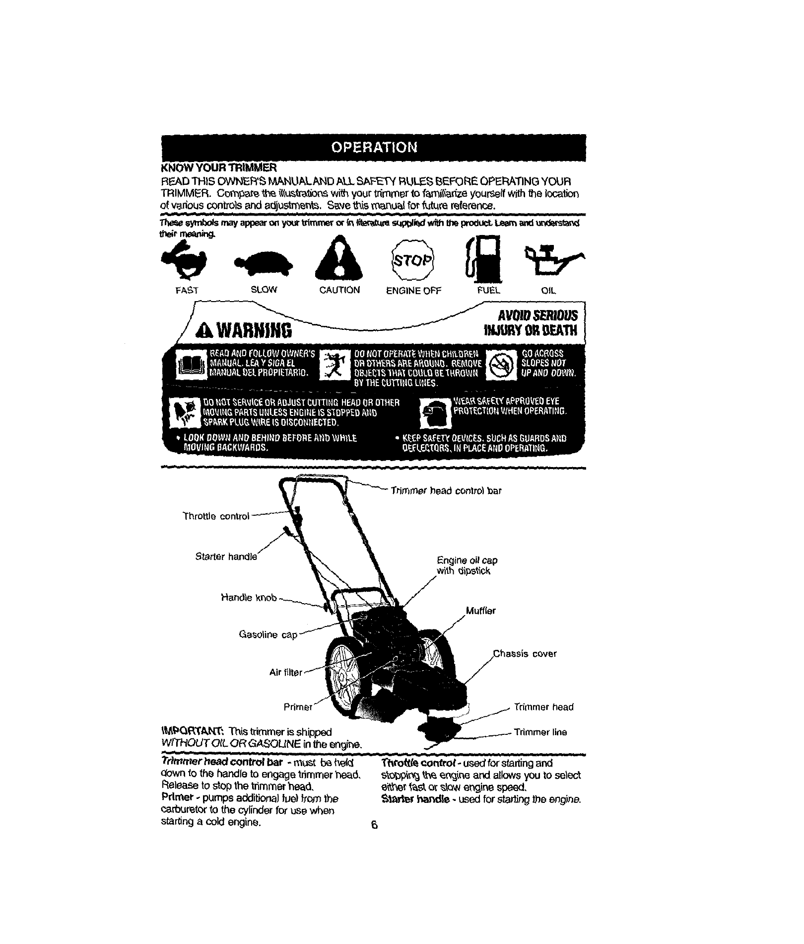 _, WARNING: This trimmer is equipped with an internal combustion engine and