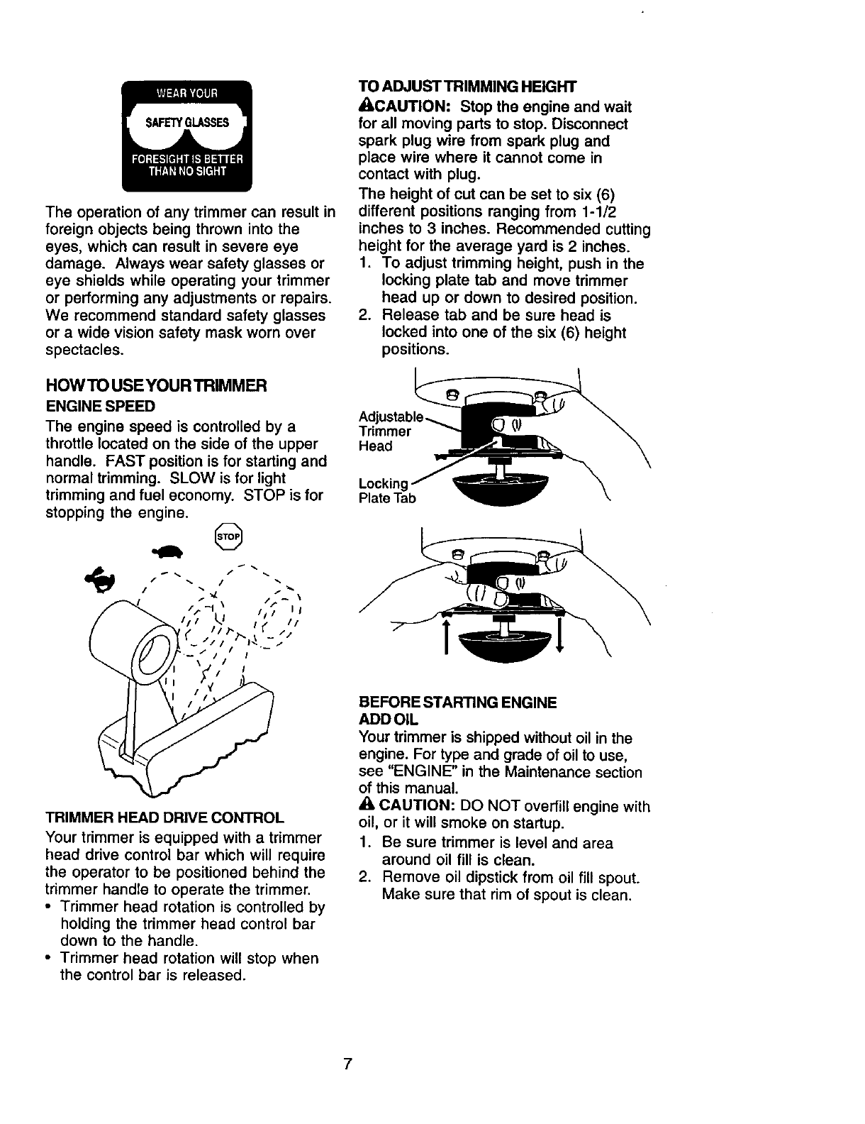 glasses or eye shields while operating your trimmer or performing any