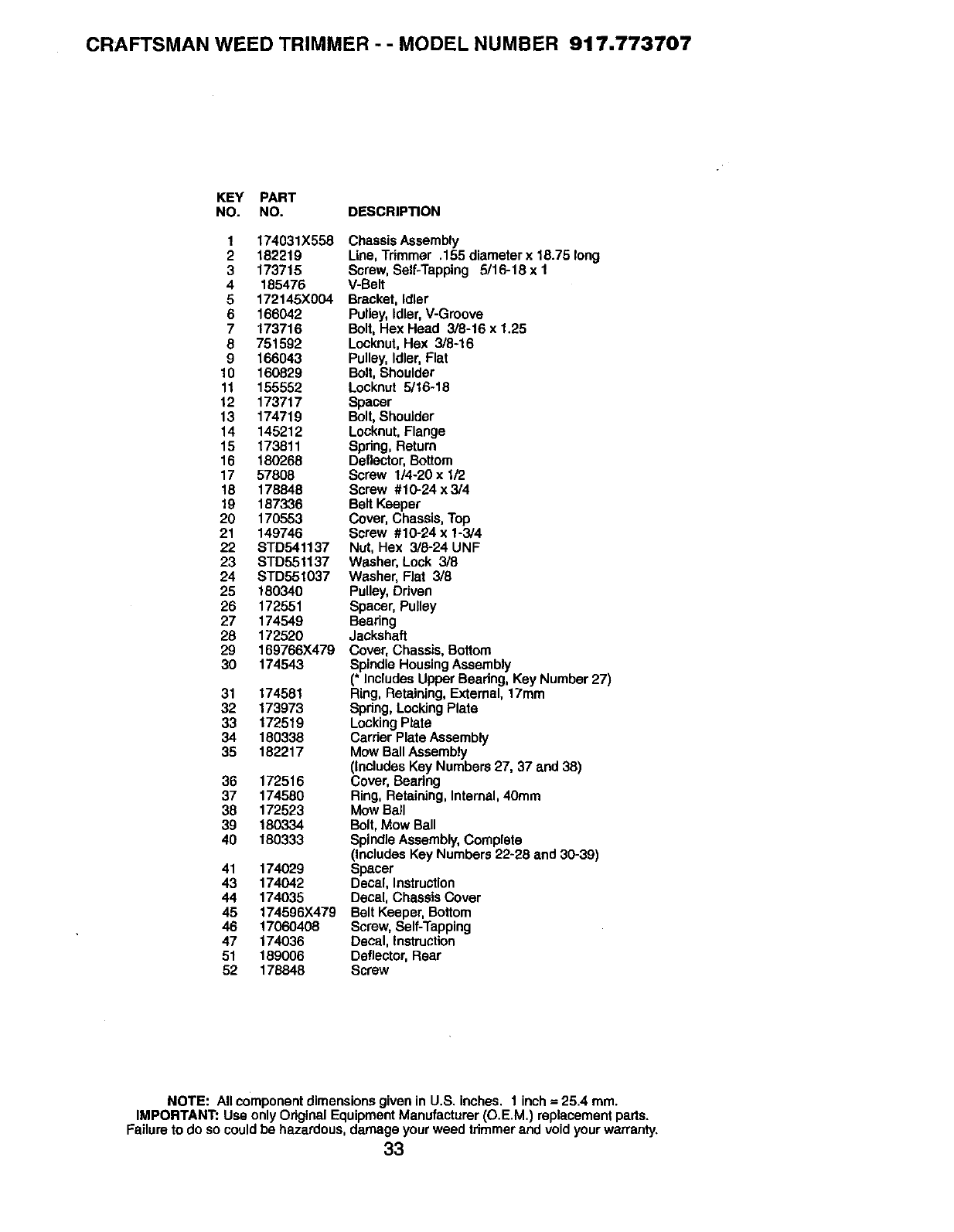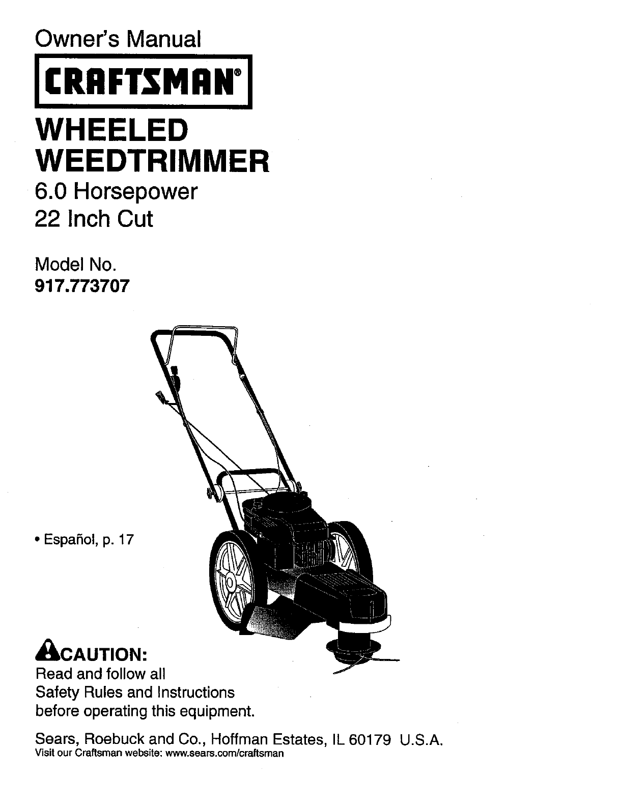 User Manual: Craftsman 917773707 917773707 CRAFTSMAN HIGH WHEEL WEED TRIMMER - Manuals and Guides View the owners manual for your CRAFTSMAN HIGH WHEEL WEED TRIMMER #917773707. Home:Lawn & Garden Parts:Craftsman Parts:917773707 Craftsman Grass trimmer (weed wacker) Manual