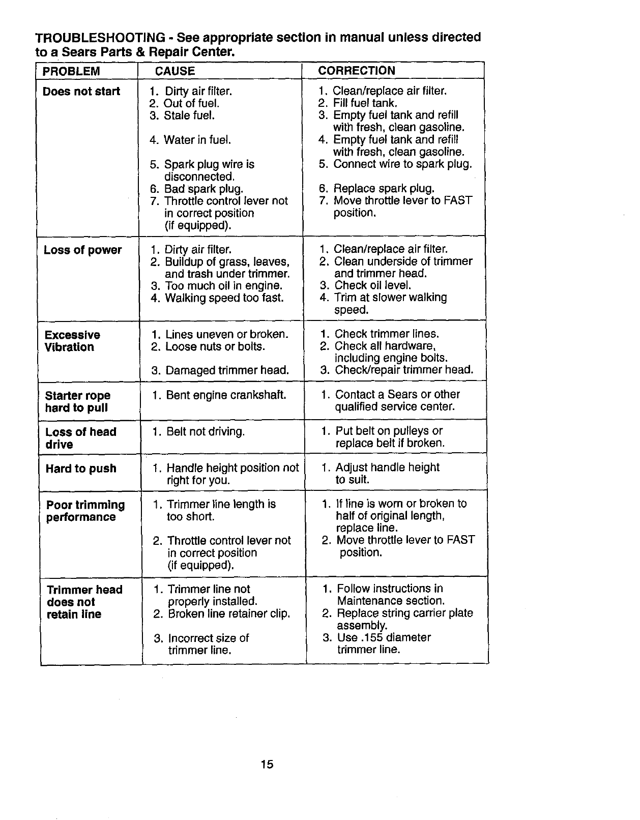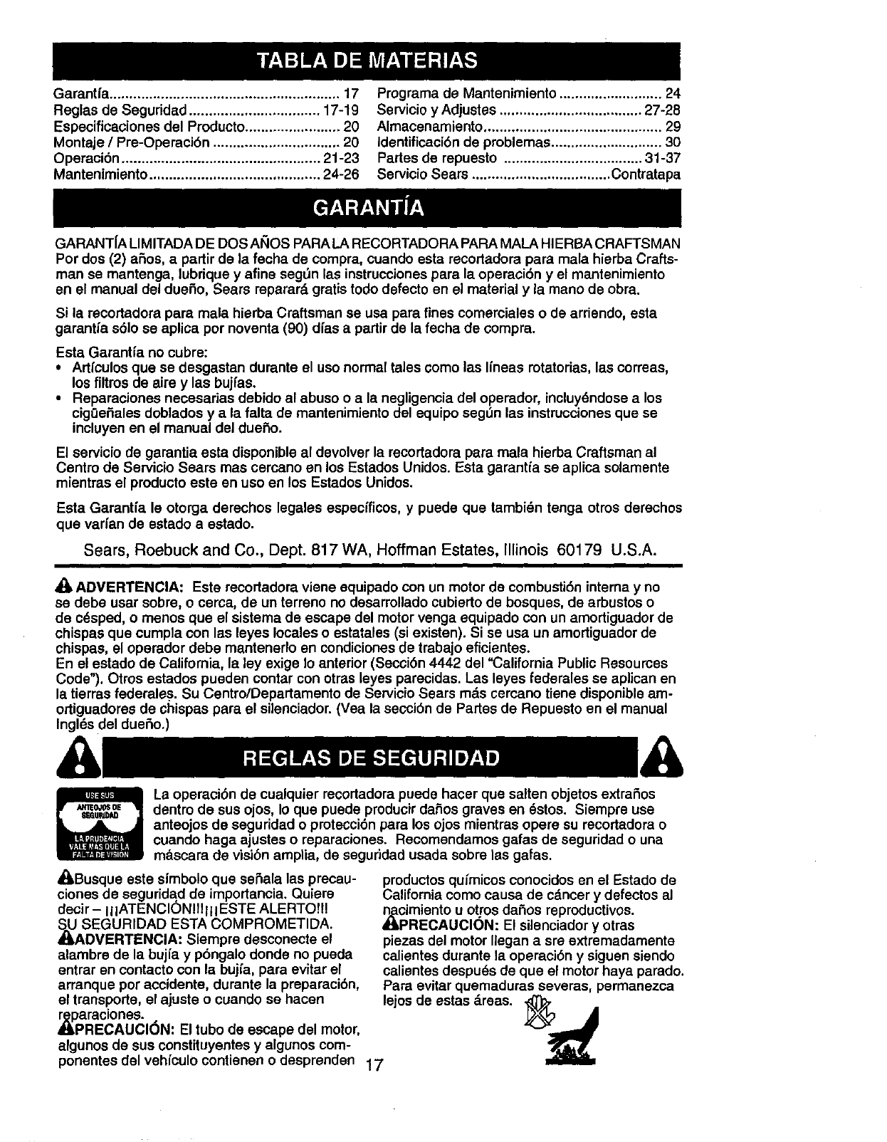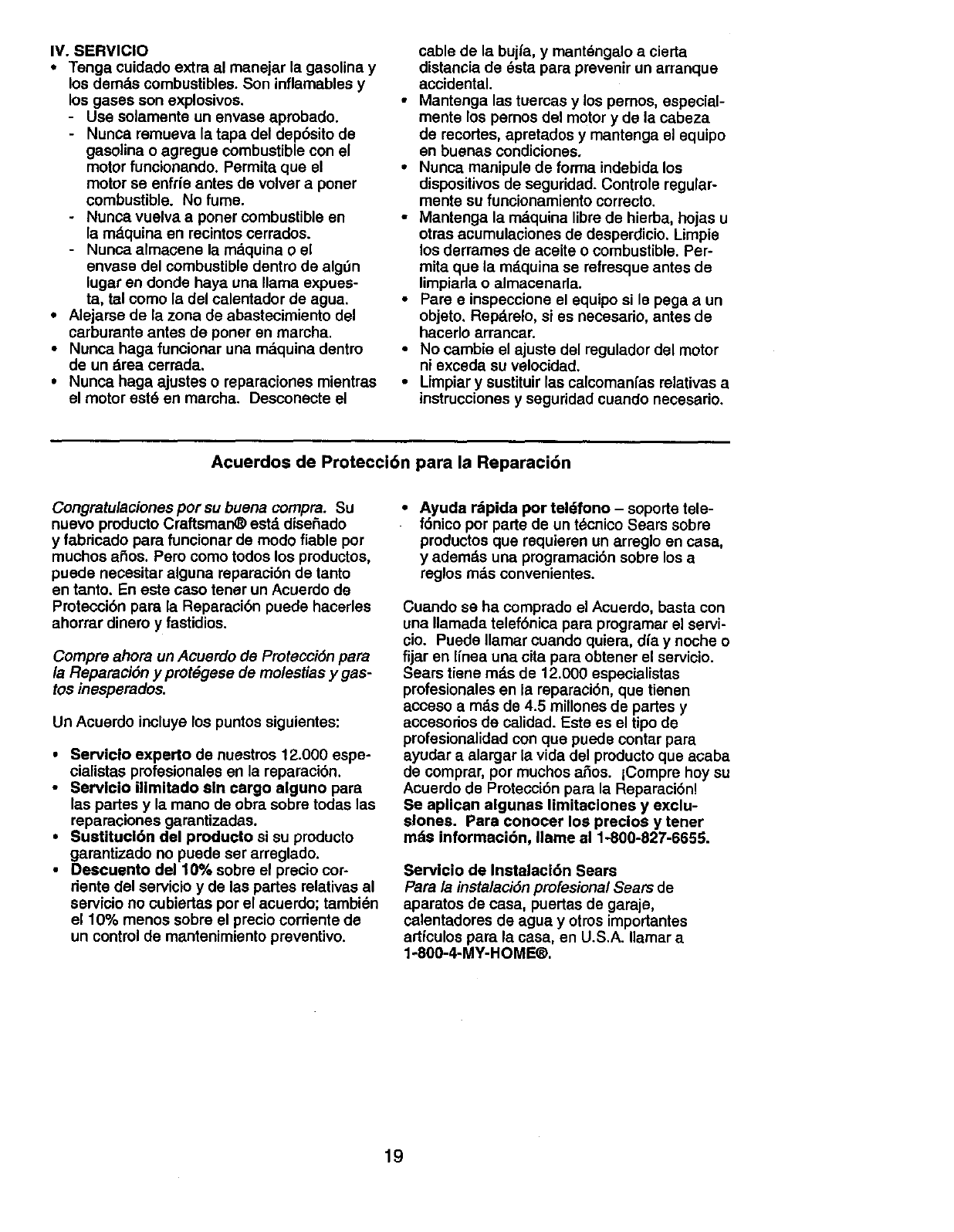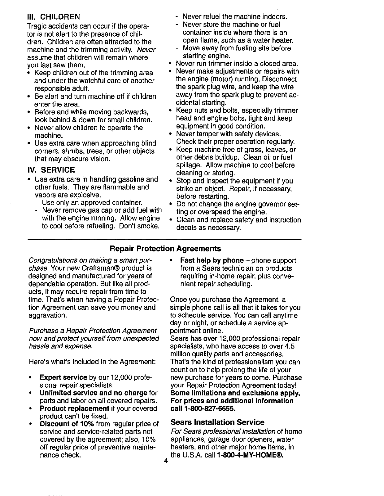 Warranty service is available by returning the Craftsman Weedtrimmer to the nearest