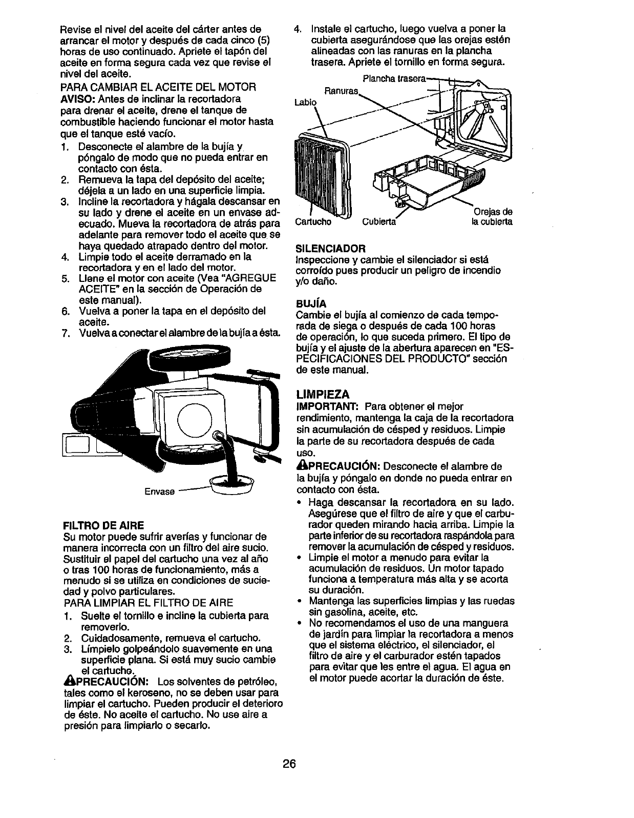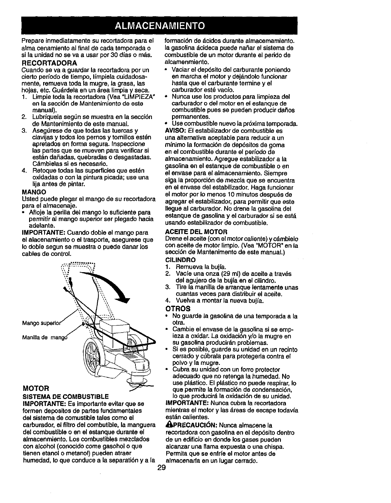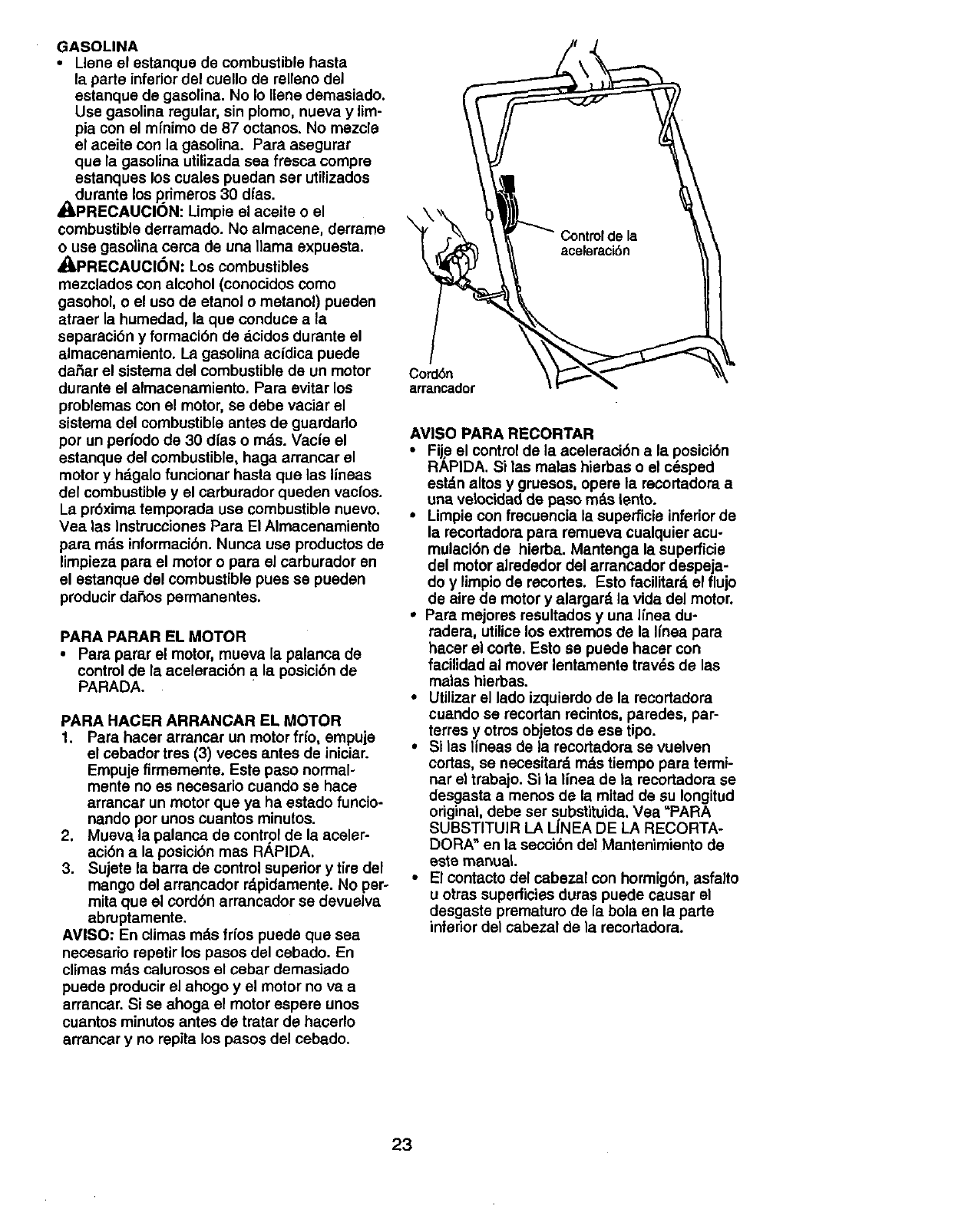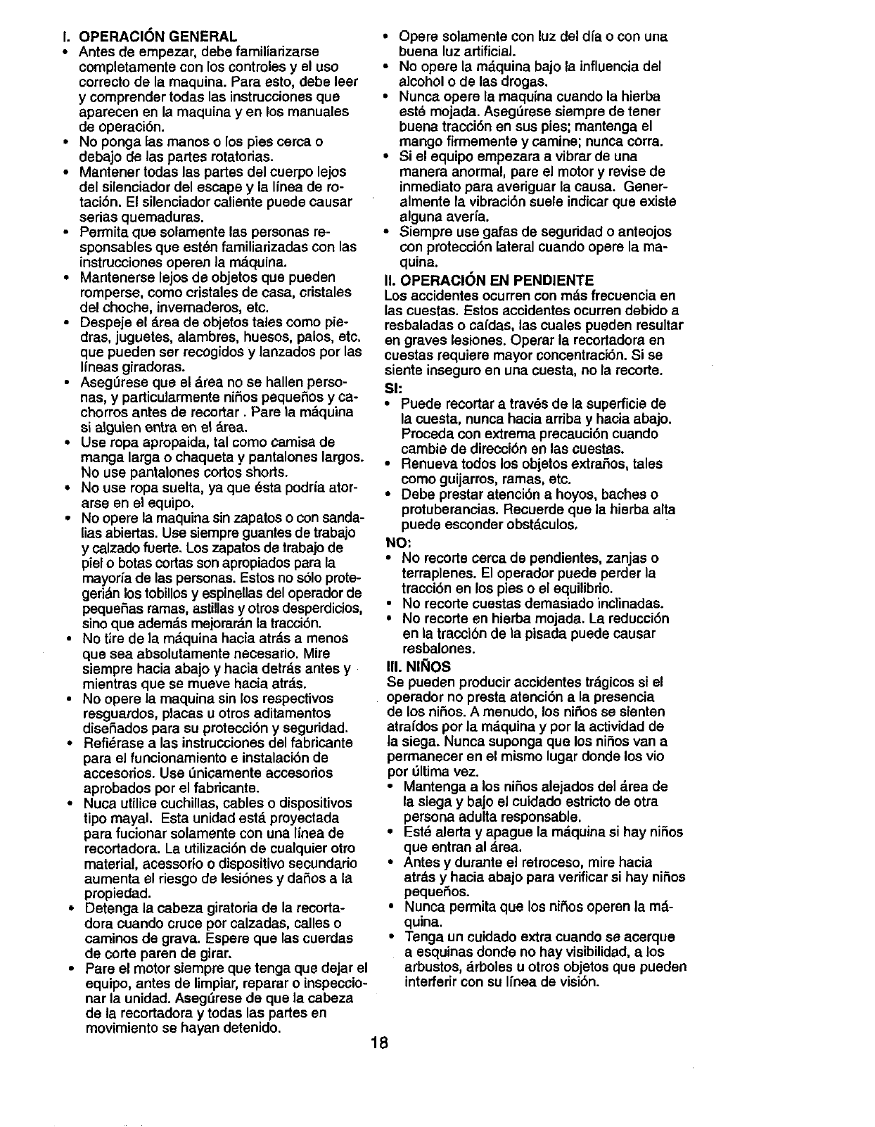 extrema precauci6n cuando opera la recortadora en o carte de las ¢uestas y cualquier obst=teulo qua pu-