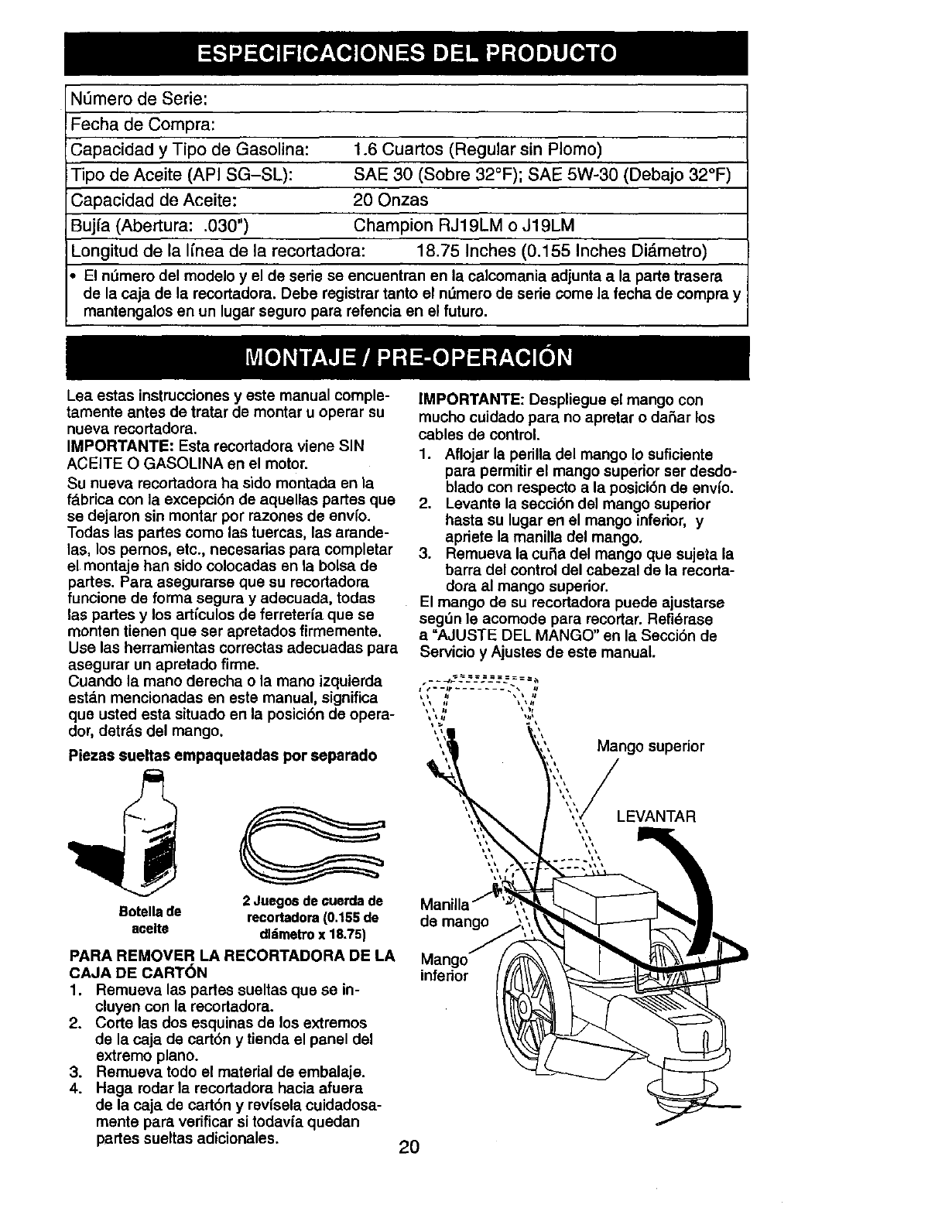 en euestes. Siga las inetrueeiones adicionalee en este manual pare recortar con seguridad en lea cuestas.