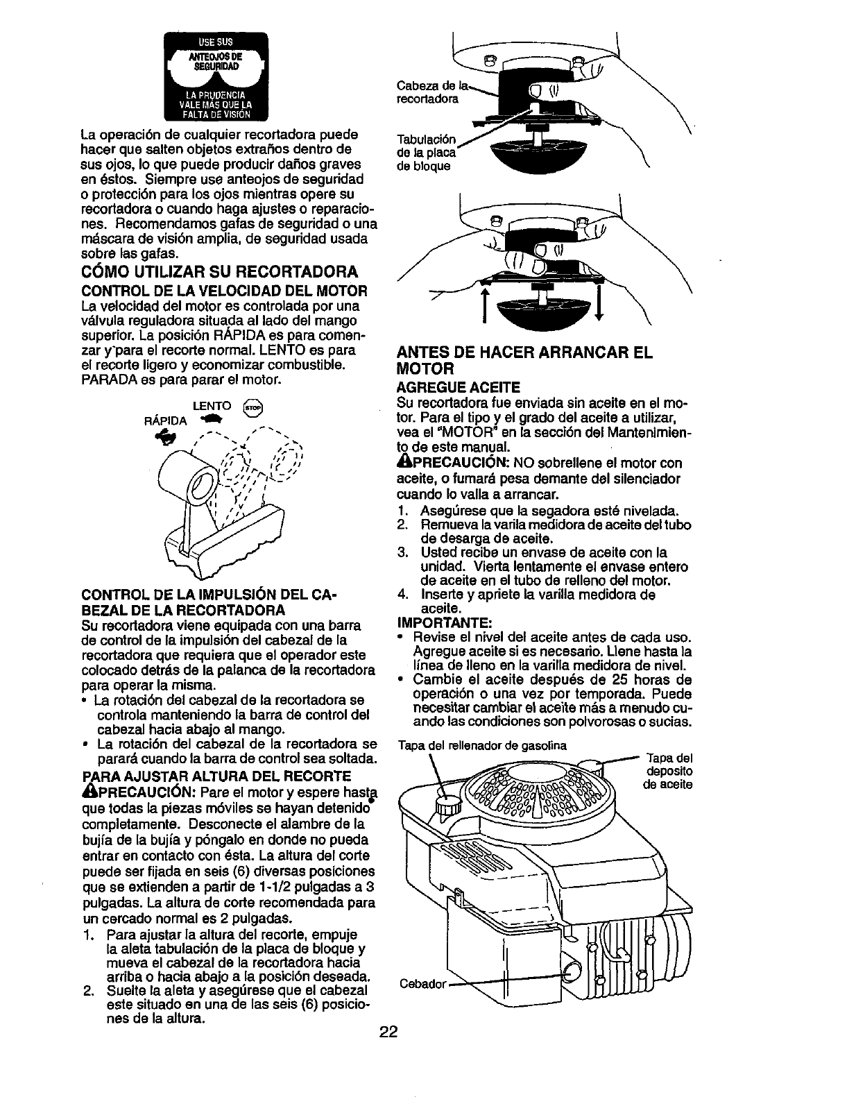 Use extrema precauci6ny evite cambios de direccl6n o movimientos bruscos y repentlnos cuando recorte