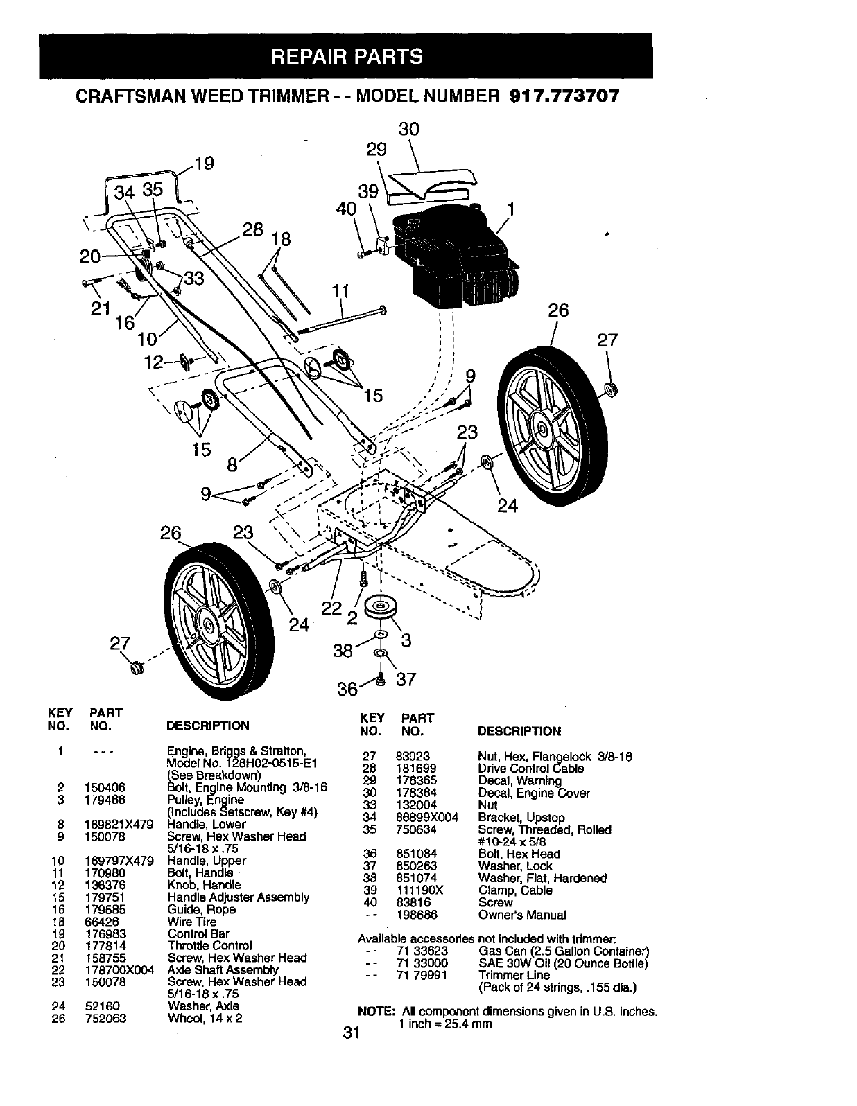 Craftsman 917773707 User Manual HIGH WHEEL WEED TRIMMER Manuals And Guides L0521896