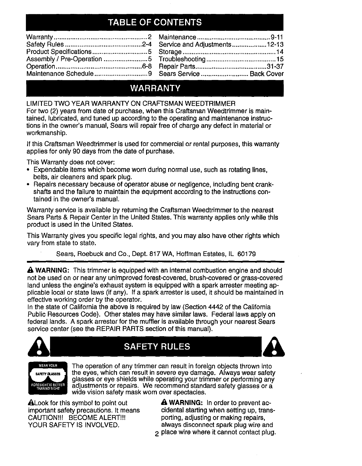 LIMITED TWO YEAR WARRANTY ON CRAFTSMAN WEEDTRIMMER