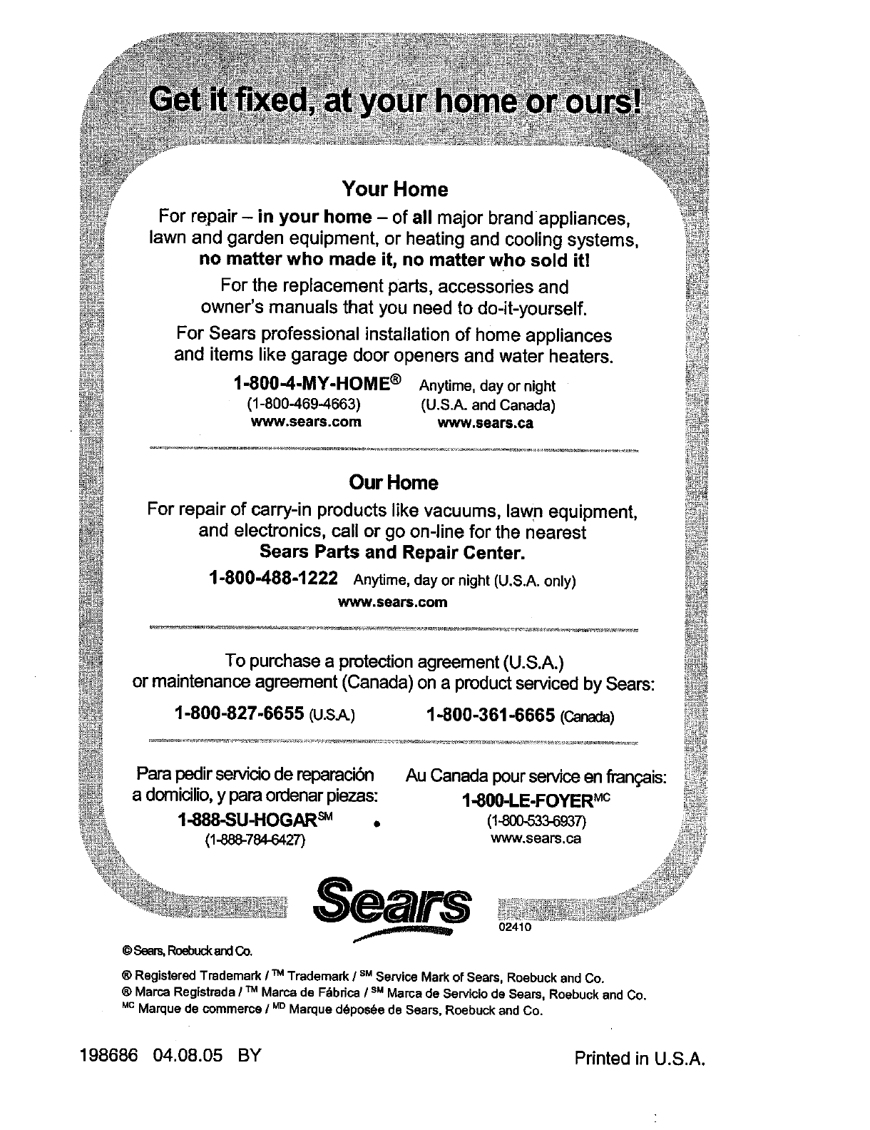 ®Registered Trademark ITM Trademark /SMService Mark of Sears, Roebuck and Co.