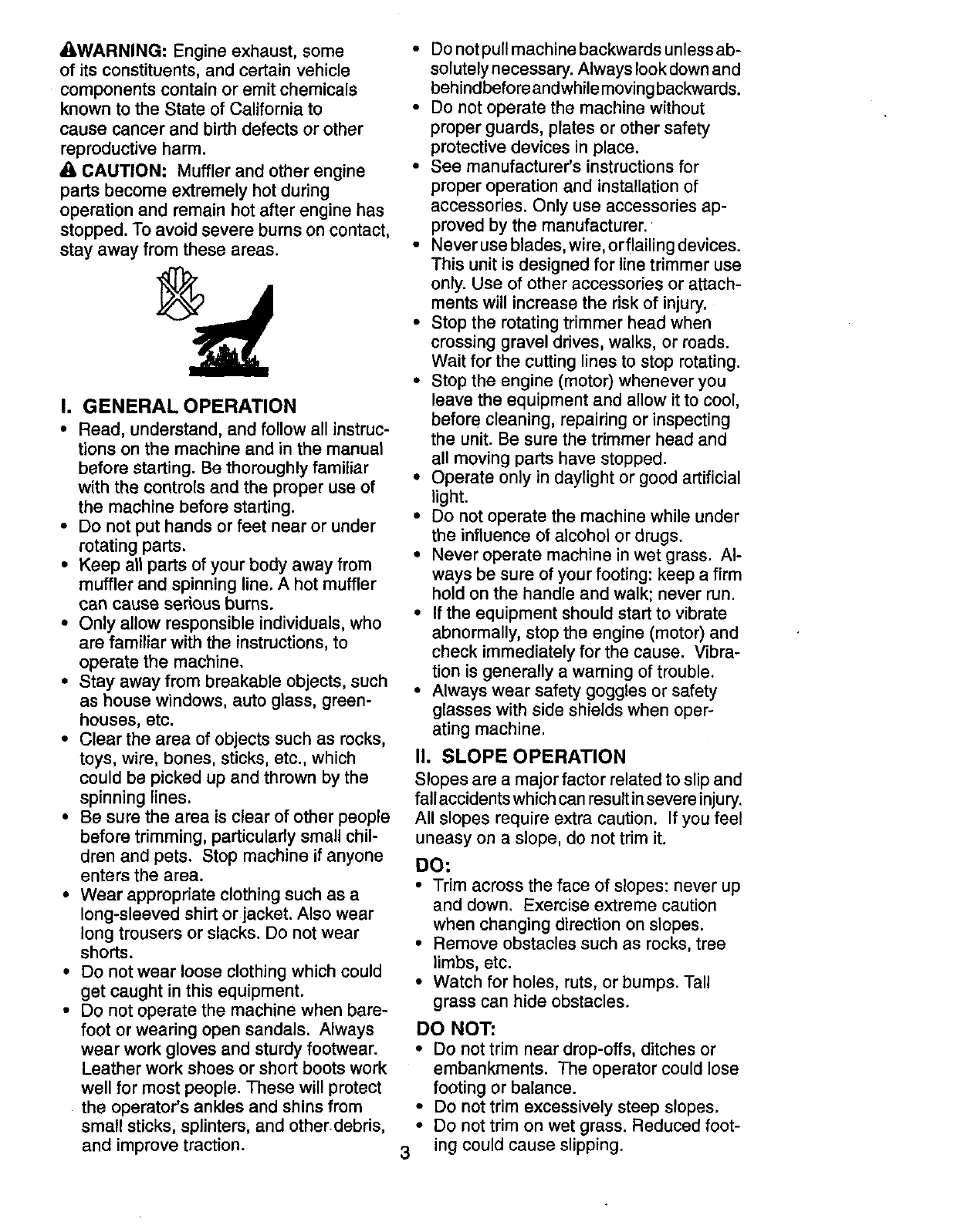 _i, WARNING: This trimmer is equipped with an internal combustion engine and should