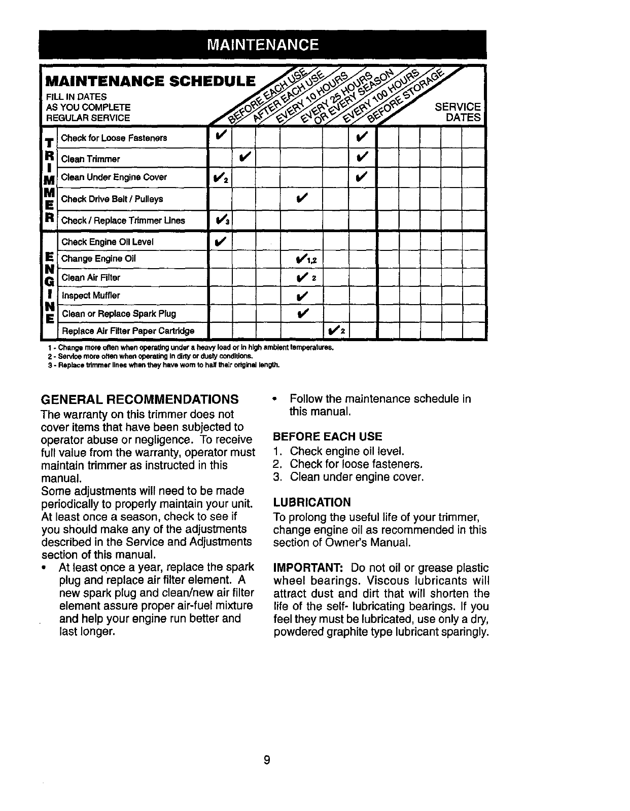 tained, lubricated, and tuned up according to the operating and maintenance instruc-